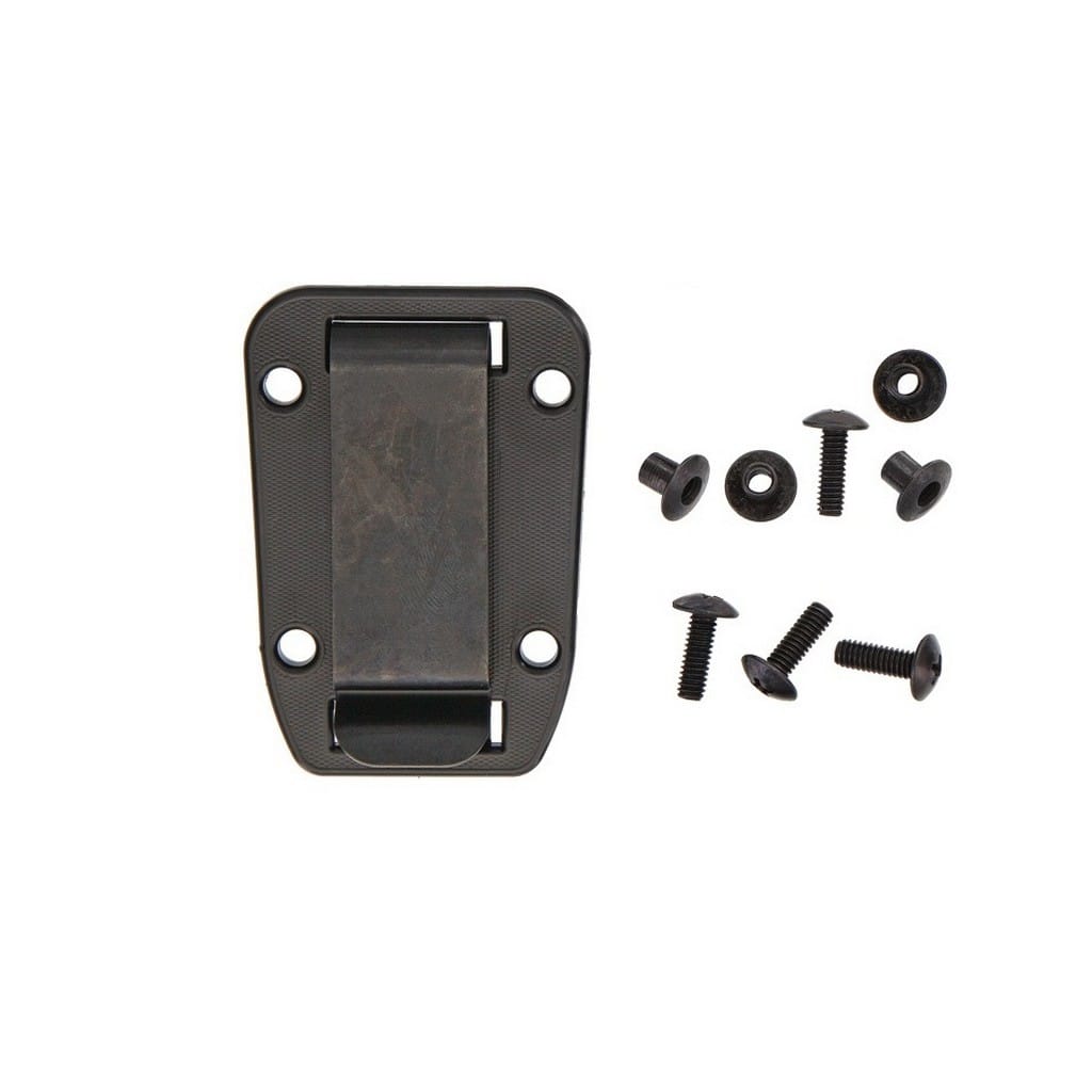 Platforma z klipsem mocującym do paska czy plecaka, którą w łatwy sposób można przymocować za pomocą śrubek (w zestawie) do pochwy.