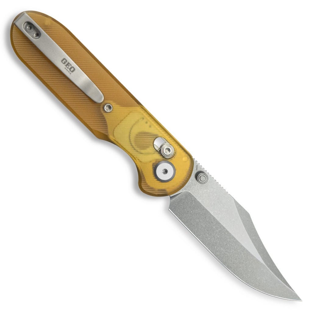 Ethereal Cutter to folder EDC, który zachwyca pod każdym względem, a zwłaszcza kunsztem wykonania, z którego słynie firma Geo Knife. Model, dzięki kompaktowym rozmiarom doskonale sprawdzi się w codziennym użytkowaniu zarówno w domu, jak i podczas aktywności na świeżym powietrzu. Ostrze o profilu Clip Point zostało zrobione z austriackiej stali nierdzewnej klasy premium Bohler M390, charakteryzującej się świetną odpornością na korozję i ścieranie. Odpowiednia kompozycja wanadu, molibdenu i wolframu sprawia, że krawędź tnąca jest ostra przez długi czas. Wykończenie głowni metodą Stonewash pozostawia nieregularną powłokę dobrze maskującą rysy i zadrapania powstające podczas eksploatacji. Klingę osadzono na podkładkach z brązu, a do jej płynnego rozłożenia służy kołek na ostrzu. Prosta obsługa jedną ręką zadowoli osoby prawo i leworęczne. Karbowanie na grzbiecie głowni stanowi stabilne wsparcie dla kciuka, ułatwiając realizację precyzyjnych zadań. Wysoki poziom bezpieczeństwa zapewnia mechanizm Crossbar Lock w postaci obustronnego bolca na okładzinach i wewnętrznych sprężyn, przypominających literę omega. Ergonomicznie wyprofilowana rękojeść z półprzezroczystego tworzywa Ultem w bursztynowym kolorze cechuje się antypoślizgową fakturą, poprawiającą przyczepność do dłoni. Całość dopełnia tytanowy klips mocujący do wygodnego przenoszenia noża blisko ciała. Na uwagę zasługują jeszcze inne detale, jak tytanowe śruby i pivot. W zestawie znajduje się również ściereczka z mikrofibry do czyszczenia narzędzia, a także zapasowe sprężynki do blokady. Producent Geo Knife koncentruje się na projektowany noży składanych z wysokiej jakości materiałów, dobieranych pod kątem ponadczasowej niezawodności. Ich domeną jest precyzja, łatwość konserwacji oraz intuicyjna i prosta obsługa.