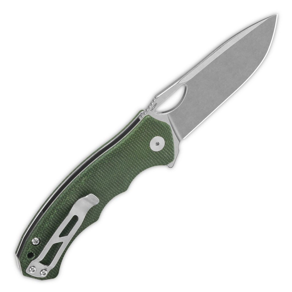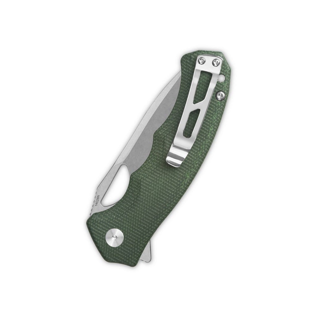 Gorilla firmy QSP Knives to model o masywnym wyglądzie i solidnej konstrukcji, stworzony do zadań EDC. Szerokie ostrze o profilu Drop Point zostało wykonane ze szwedzkiej stali nierdzewnej Sandvik 14C28N o bardzo dobrej odporności na korozję i odpowiednio twardej. Wykończenie jej metodą Stonewash pozostawia nieregularną powłokę dobrze maskującą rysy i zadrapania powstające podczas eksploatacji. Klingę osadzono na ceramicznych łożyskach kulkowych, która przy wykorzystaniu otworu na głowni lub flippera, pełniącego również funkcję jelca, wysuwa się płynnie i gładko. Prosta i szybka obsługa narzędzia jedną ręką zadowoli zarówno osoby prawo, jak i leworęczne. Klasyczny mechanizm Liner Lock, blokujący ostrze po rozłożeniu, czuwa nad bezpieczeństwem podczas użytkowania. Karbowany grzbiet foldera daje stabilne podparcie dla kciuka i ułatwia realizację prac wymagających większej precyzji. Rękojeść z przyjemnej w dotyku Micarty w zielonym kolorze, dzięki ergonomicznemu wyprofilowaniu pod zaciskającą się dłoń gwarantuje pewny chwyt w każdych warunkach. Na zakończeniu umieszczono otwór umożliwiający przełożenie breloka ozdobnego lub paracordu. Całość dopełnia klips mocujący do wygodnego przenoszenia noża w kieszeni spodni. Nazwa firmy QSP to akronim od słów Quality, Service, Price odzwierciedlający zaangażowanie producenta w te podstawowe wartości. Produkty cechują się topowymi materiałami, mistrzowskim wzornictwem i perfekcyjnym wykończeniem, a wszystko to w rozsądnej cenie. Każdy egzemplarz jest rygorystycznie weryfikowany na etapie końcowym, co zapewnia najwyższą jakość.