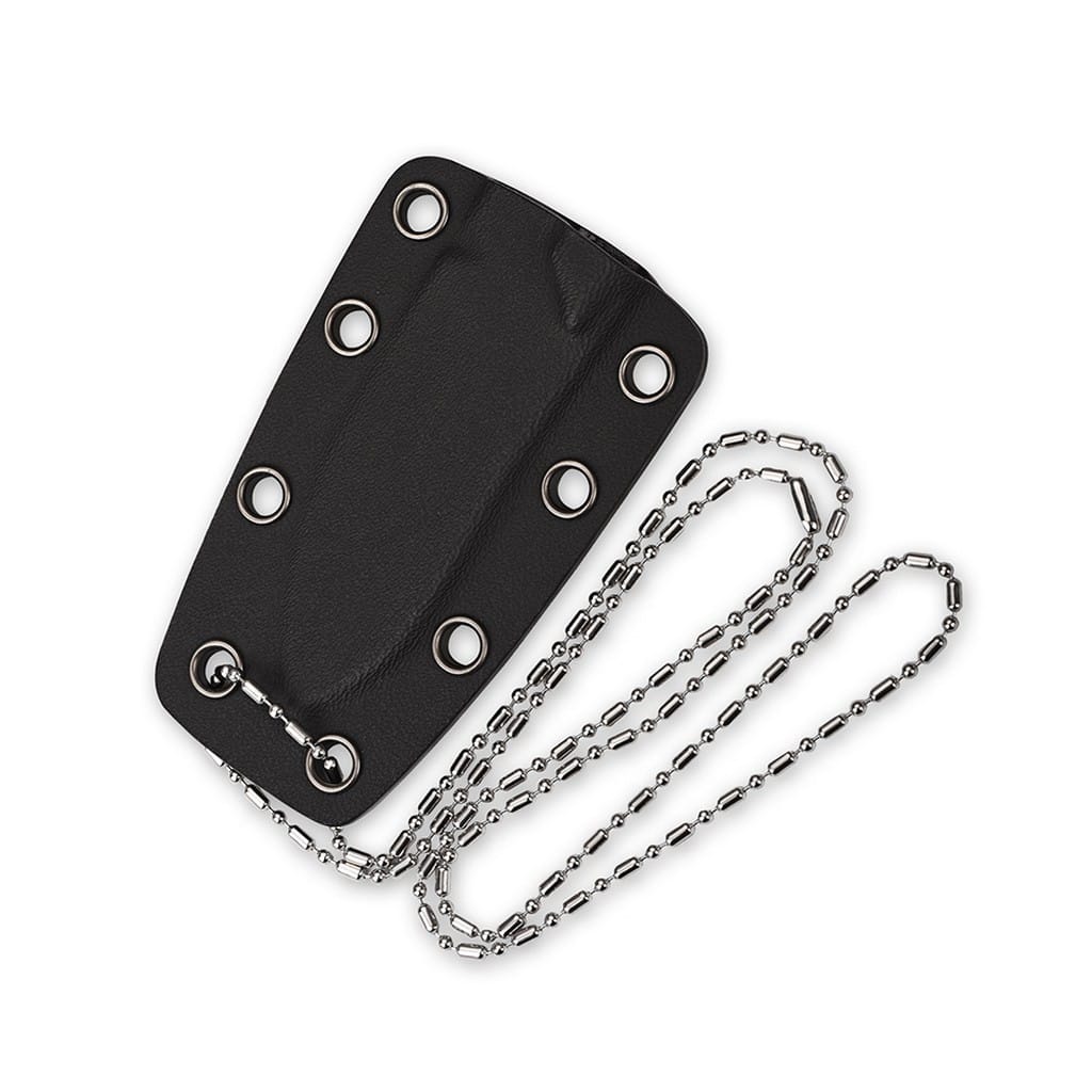 Neckmuk firmy QSP Knives to kompaktowy nóż z ostrzem stałym o oryginalnym wyglądzie i doskonałej wydajności cięcia. Głownię o uniwersalnym profilu Drop Point wykonano z wysokiej jakości stali narzędziowej D2 długo utrzymującej właściwą ostrość krawędzi tnącej. Wykończenie jej metodą Satin pozostawia drobne ryski lekko matujące powierzchnię, co daje efekt niedokładnego wypolerowania. Karbowany grzbiet ostrza stanowi stabilne podparcie dla kciuka i ułatwia realizację zadań wymagających większej precyzji. Do stalowej konstrukcji full tang, która zwiększa wytrzymałość narzędzia, przymocowano śrubami okładziny z lekkiego i wytrzymałego tworzywa G10. Rękojeść została wyprofilowana pod zaciskającą się dłoń użytkownika, co w połączeniu z jej chropowatą powierzchnią gwarantuje pewny chwyt i komfort pracy. Na zakończeniu umieszczono otwór umożliwiający przełożenie breloka ozdobnego lub paracordu. W zestawie znajduje się pochwa z kydexu wyposażona w srebrny łańcuszek kulkowy, pozwalający na wygodne przenoszenie noża na karku. Neckmuk to świetny wybór na model EDC, który sprawdzi się zarówno w domu, na mieście, jak i w terenie podczas aktywności na świeżym powietrzu. Nazwa firmy QSP to akronim od słów Quality, Service, Price odzwierciedlający zaangażowanie producenta w te podstawowe wartości. Produkty charakteryzują się topowymi materiałami, mistrzowskim wzornictwem i perfekcyjnym wykończeniem, a wszystko to w rozsądnej cenie. Każdy egzemplarz jest rygorystycznie weryfikowany na etapie końcowym, co zapewnia najwyższą jakość.