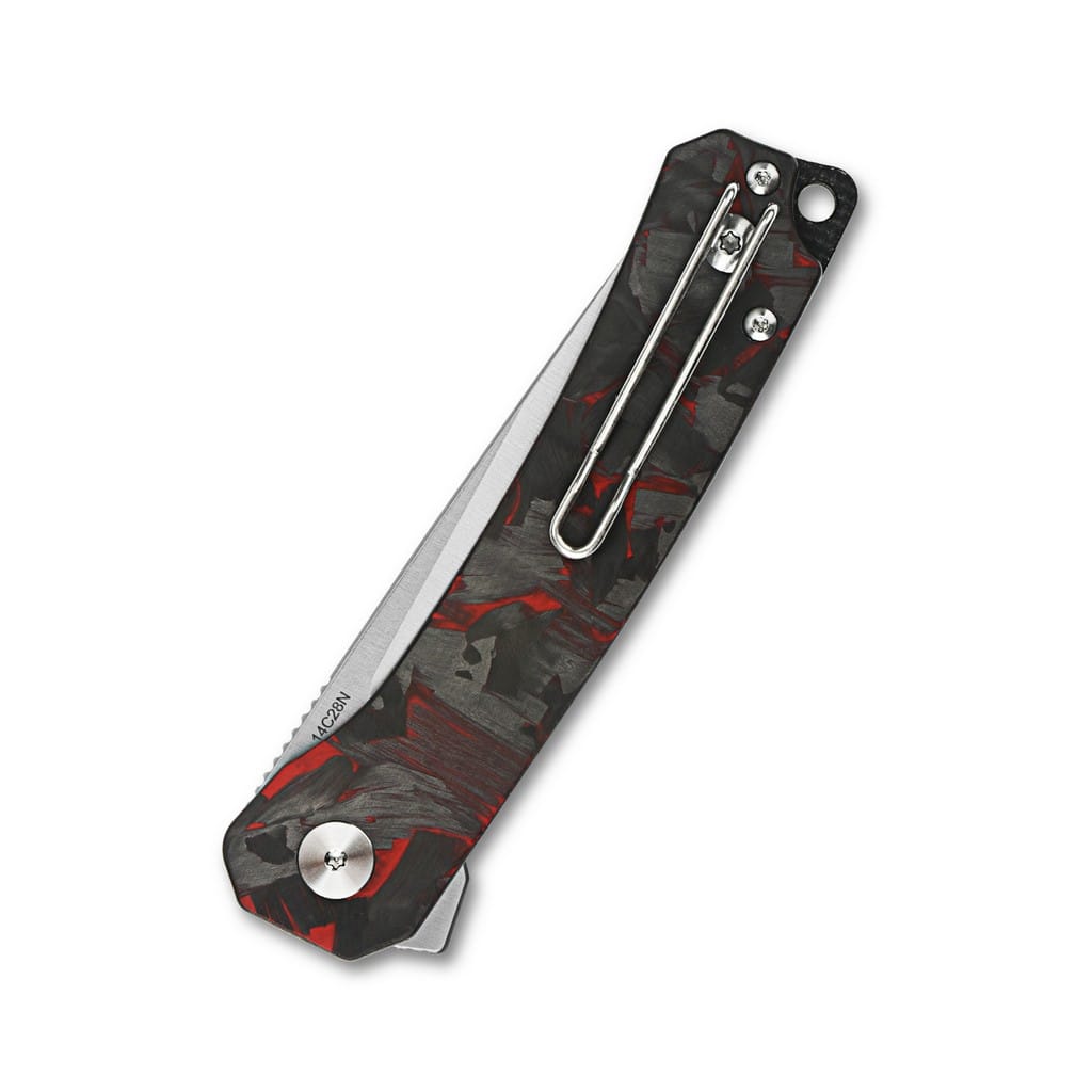 Osprey to nóż składany o tradycyjnym, a jednocześnie eleganckim wyglądzie, zaprojektowany przez firmę QSP Knives. Posiada ostrze o uniwersalnym profilu Drop Point wykonane ze szwedzkiej stali nierdzewnej Sandvik 14C28N o bardzo dobrej odporności na korozję i odpowiednio twardej. Wykończenie jej metodą Satin pozostawia drobne ryski lekko matujące powierzchnię, co daje efekt niedokładnego wypolerowania. Klingę osadzono na ceramicznych łożyskach kulkowych, która przy wykorzystaniu subtelnego flippera, pełniącego także funkcję jelca, wysuwa się płynnie i gładko. Prosta i szybka obsługa narzędzia jedną ręką zadowoli zarówno osoby prawo, jak i leworęczne. Klasyczny mechanizm Liner Lock, blokujący folder po rozłożeniu, czuwa nad bezpieczeństwem podczas pracy. Karbowany grzbiet ostrza stanowi stabilne podparcie dla kciuka i ułatwia realizację zadań wymagających większej precyzji. Rękojeść to połączenie tworzywa G10 z włóknem węglowym tworzącym niejednorodną, ciemną strukturę z przyjemnym, czerwonym akcentem. Na zakończeniu umieszczono otwór umożliwiający przełożenie breloka ozdobnego lub paracordu. Konstrukcję uzupełnia dwupozycyjny klips mocujący o drucianej budowie do wygodnego przenoszenia noża w kieszeni spodni. Nazwa firmy QSP to akronim od słów Quality, Service, Price, co odzwierciedla zaangażowanie producenta w te podstawowe wartości. Produkty charakteryzują się topowymi materiałami, mistrzowskim wzornictwem i perfekcyjnym wykończeniem, a wszystko to w rozsądnej cenie. Każdy egzemplarz jest rygorystycznie weryfikowany na etapie końcowym, co zapewnia najwyższą jakość.