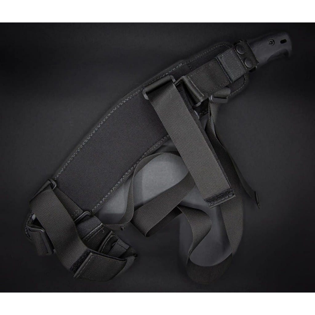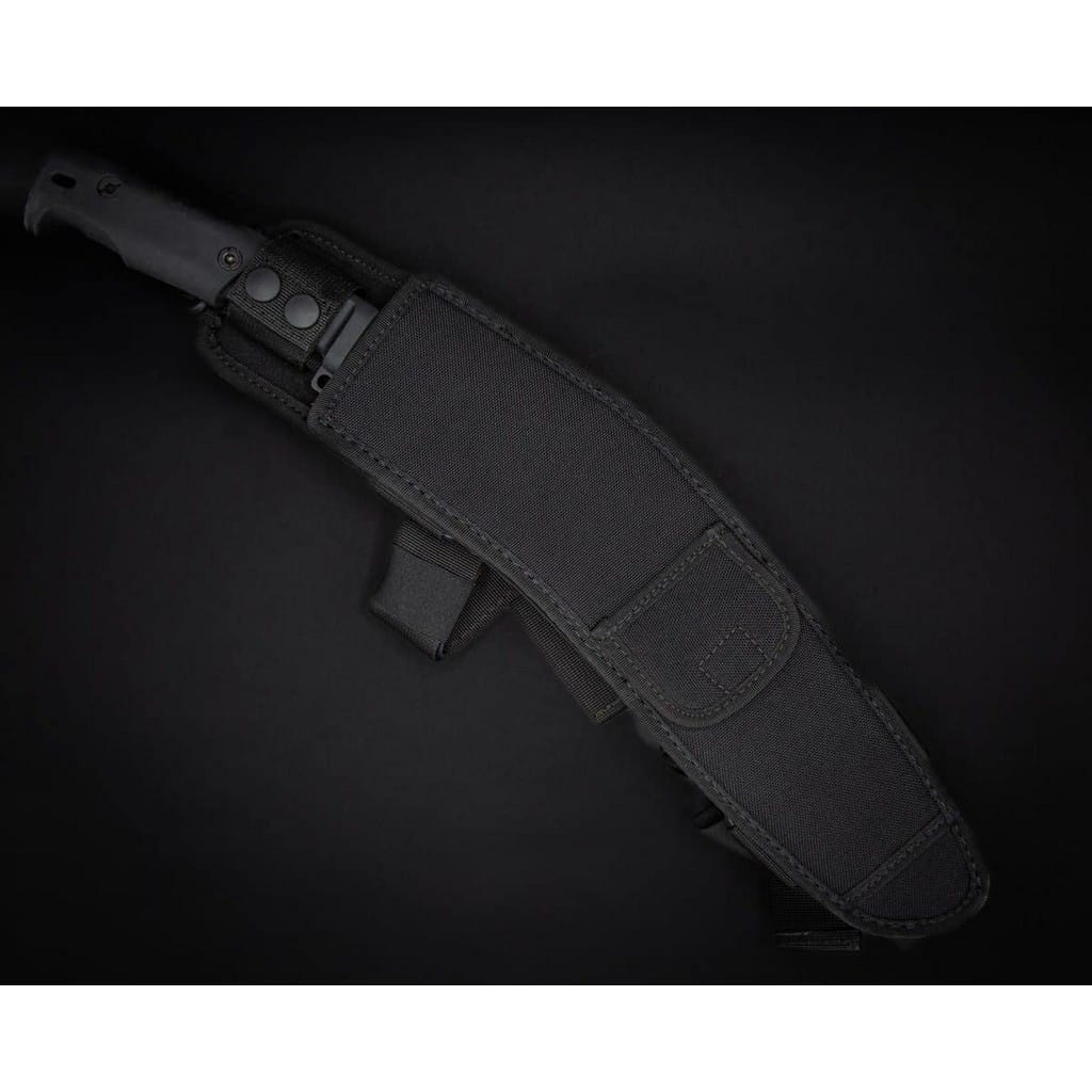 Model KH firmy Extrema Ratio to maczeta łącząca nowoczesny styl z antyczną koncepcją. Zaprojektowana w oparciu o kukri, tradycyjny nóż wojowniczego ludu Ghurków, pochodzących z Nepalu, który wywodzi się ze starożytnych greckich mieczy w kształcie sierpów. Model posiada odpowiednio wyważoną i wytrzymałą konstrukcję, dlatego idealnie sprawdzi się jako narzędzie do wymagających zadań w terenie. Bez problemu przenika przez drewno oraz tnie uporczywą roślinność. Grubą na ponad sześć milimetrów głownię wykonano z austriackiej stali nierdzewnej Bohler N690 charakteryzującej się wysoką odpornością na korozję i długim trzymaniem ostrości. W celu zabezpieczenia jej przed zarysowaniami i negatywnym działaniem czynników zewnętrznych pokryto ją czarną i antyodblaskową powłoką MIL-C-13924. Bezpieczeństwo użytkowania zapewnia jelec chroniący palce przed ich przypadkowym zsunięciem się na krawędź tnącą. Rękojeść z termoplastycznego elastomeru o nazwie Forprene gwarantuje doskonałą ergonomię chwytu świetnie dopasowując się do dłoni, nawet gdy jest ona w rękawicy. Cechuje się niewrażliwością na chemikalia oraz ekstremalne temperatury, co pozwala jej przechodzić rygorystyczne testy NATO. Całość dopełnia otwór umożliwiający zamocowanie linki i stworzenie oplotu na nadgarstek. W zestawie znajduje się wielofunkcyjna pochwa z odpornego na przetarcia nylonu, kompatybilna z systemem Molle. Umożliwia ona wygodne transportowanie maczety w pozycji pionowej przy pasie lub wyposażeniu. Dodatkowo posiada kieszonkę na drobne akcesoria oraz dwie taśmy do mocowania całości do uda. Extrema Ratio to włoska manufaktura z siedzibą w Prato, w regionie Toskanii. Firma od 1997 roku mistrzowsko projektuje niesamowicie mocne noże taktycznie i myśliwskie, które nie mają sobie równych w przemyśle militarnym. Produkcja opiera się jedynie na wysokiej jakości materiałach i najnowocześniejszych technologiach. Co w połączeniu z tradycyjnym rzemiosłem i ręcznym wykończeniem każdego egzemplarza tworzy produkt spełniający najostrzejsze normy wojskowe.