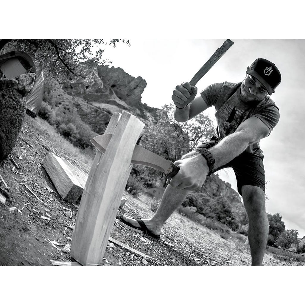 Versafix firmy Gerber to kompaktowa maczeta o ergonomicznej budowie i wytrzymałej konstrukcji full tang. Świetnie zaprojektowany kształt ostrza bardzo dobrze sprawdzi się do wykonywania różnego rodzaju zadań na świeżym powietrzu. Dodatkowo głownia została wykończona metodą Stonewash pozostawiającą nieregularną powłokę dobrze maskującą rysy powstające podczas eksploatacji. Antypoślizgowa faktura rękojeści zrobionej z tworzywa pokrytego gumą gwarantuje doskonałą przyczepność do dłoni i nie męczy jej podczas intensywnego użytkowania. Na zakończeniu znajduje się otwór na paracord lub inną linkę mocującą. Bezpieczeństwo pracy wspomaga jelec chroniący rękę przed jej przypadkowym zsunięciem się na krawędź tnącą. W zestawie znajduje się nylonowa pochwa do wygodnego transportowania maczety na pasku blisko ciała. Versafix to idealny towarzysz każdej wyprawy w teren, gdzie niezbędne jest narzędzie bardziej zaawansowane niż  tradycyjny nóż.
