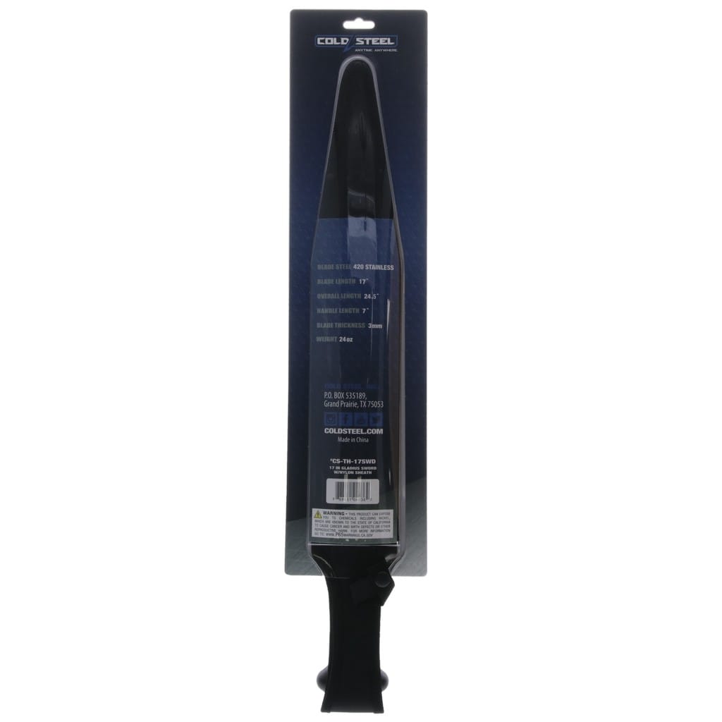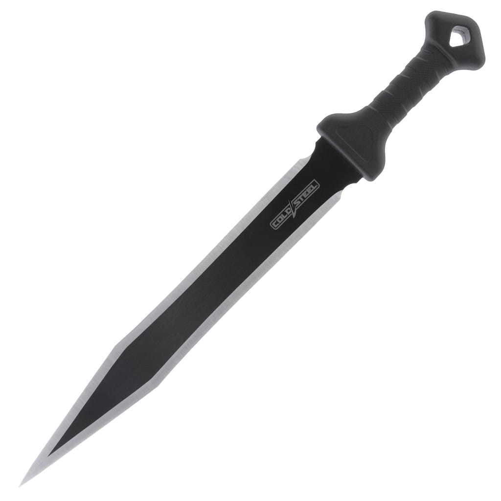 Firma Cold Steel w myśl zasady, że większe czasami znaczy znacznie lepsze, zaprojektowała duży miecz do rzucania. Obosieczne ostrze o dwutonowym wykończeniu wykonano z wytrzymałej stali nierdzewnej 420. Ergonomiczna rękojeść z tworzywa gwarantuje pewny chwyt, a obustronny jelec zabezpiecza dłoń przed jej zsunięciem się na krawędź tnącą. To potężne i drapieżne narzędzie poradzi sobie również z upadkiem towarzyszącym rzucaniu. Dodatkowo w zestawie znajduje się czarna pochwa z nylonu do bezpiecznego transportowania miecza blisko ciała, dzięki wbudowanej szlufce na pasek.