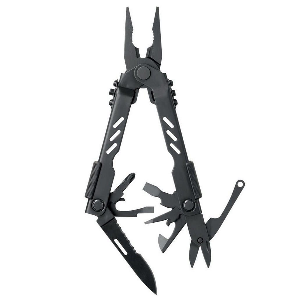 Multi-Plier 400 to użyteczne i wytrzymałe narzędzie posiadające 12 najpotrzebniejszych funkcji, które szybko doceniamy w sytuacji awaryjnej. Produkt niezastąpiony zarówno w domu, w warsztacie, czy podczas wyprawy w teren. Model wykonano z wytrzymałej stali nierdzewnej i pokryto czarną oksydą chroniącą przed korozją. Multitool posiada między innymi przecinak do drutu, zaciskacz do przewodów, ostrze częściowo ząbkowane, zestaw śrubokrętów płaskich, wkrętak krzyżakowy oraz otwieracz do puszek i butelek. Dodatkowo został wyposażony w nożyczki Fiskars, które są w stanie przeciąć nawet pasy bezpieczeństwa, a także w płaskie kombinerki ze specjalnym mechanizmem sprężynowym, pozwalającym na obsługę jedną ręką. Zastosowana technologia Saf.T.Plus, czyli najmocniejszy zabezpieczający system na rynku, blokuje narzędzia przed ich przypadkowym złożeniem się podczas pracy. W komplecie znajduje się nylonowy pokrowiec zapinany na rzep, do wygodnego transportowania toola blisko ciała.