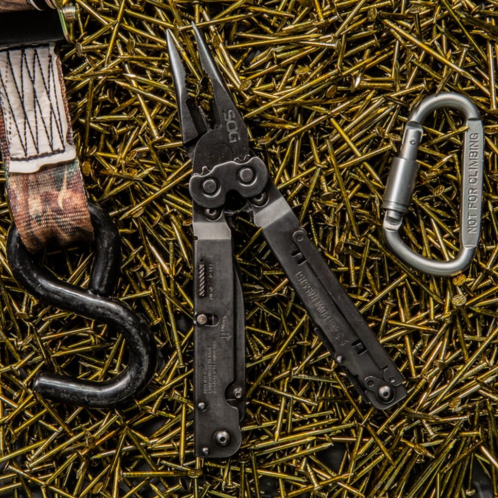 Multitool PowerAssist firmy SOG to zaawansowane narzędzie posiadające 16 najpotrzebniejszych funkcji. Został wykonany ze stali nierdzewnej 420, którą poddano profesjonalnej obróbce termicznej, co sprawia, że każdy element posiada odpowiednią twardość. Dodatkowo pokrycie go czarną oksydą zabezpiecza przed korozją i odblaskami. Zaletą modelu jest dostęp do obu noży - gładkiego i ząbkowanego bez konieczności rozkładania toola. Pozostałe narzędzia są dostępne po otwarciu multitoola i ukryte pod skrzydłem, które należy podnieść, aby dostać się między innymi do pilnika, śrubokrętów, przecinaka do lin, czy otwieracza do puszek i butelek. Zastosowana technologia S.A.T. (SOG Assisted Technology) wysuwania ostrza jedną ręką sprawia, że w ułamku sekundy jest ono gotowe do działania. Dzięki systemowi Compound Leverage nacisk na kombinerkach jest bardzo duży, co ułatwia pracę i podnosi jej wydajność oraz zmniejsza zmęczenie dłoni użytkownika. PowerAssist jest wygodny i stosunkowo lekki, co czyni go doskonałym wyborem do wykonywania codziennych zadań. W zestawie znajduje się również nylonowa pochwa z klipsem mocującym do pasa, która umożliwia bezpieczne przenoszenie toola.