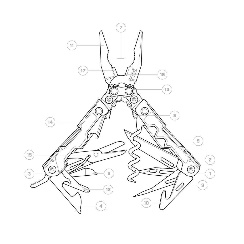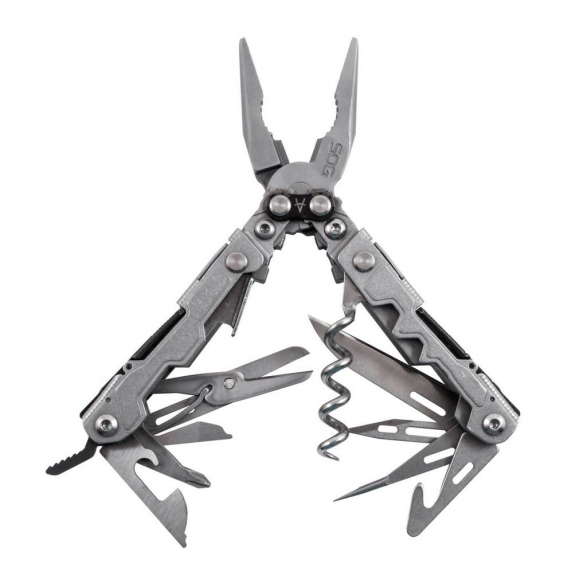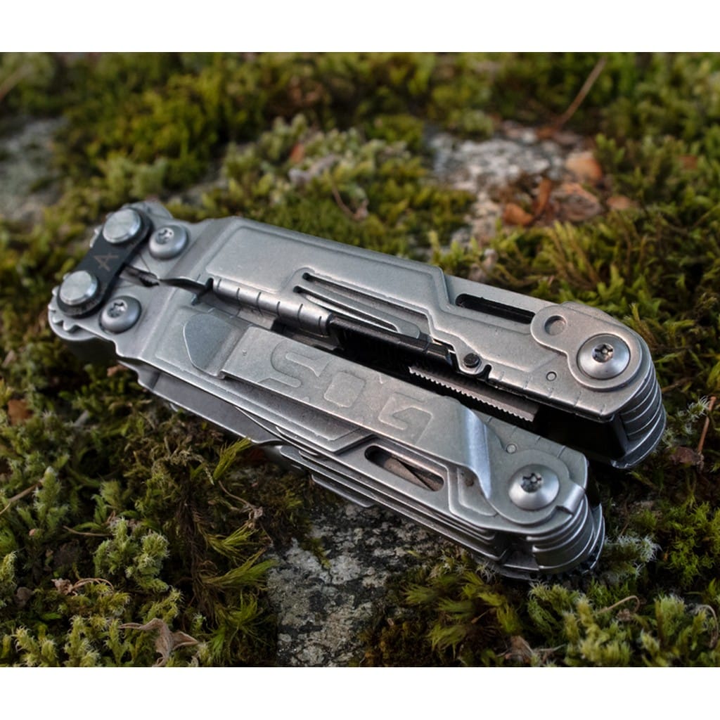 PowerLitre to nieduży wielofunkcyjny multitool posiadający 17 pełnowymiarowych i najpotrzebniejszych narzędzi. Doskonale sprawdzi się do niewielkich napraw w domu jak i w terenie, a jego bezpieczne transportowanie w kieszeni spodni lub przy wyposażeniu zapewnia klips mocujący. To pierwszy model wśród produktów firmy SOG posiadający wbudowany korkociąg. Zaletą toola jest wygodny dostęp do komponentów bez konieczności jego rozkładania, co pozwala na szybkie skorzystanie z noża gładkiego, śrubokrętów, nożyczek czy magnetycznego gniazda na bity oraz innych dodatków. W sytuacji awaryjnej na ratunek podąża ostrze do cięcia pasów, którym z powodzeniem przetniemy również twarde liny, sznury oraz nylonowe taśmy. PowerLitre wykonano w całości ze stali nierdzewnej i wykończono metodą Stonewash pozostawiającą nieregularną powłokę dobrze maskującą rysy powstające podczas eksploatacji.