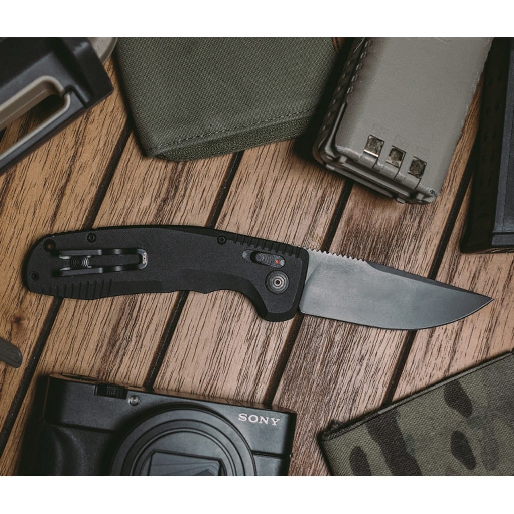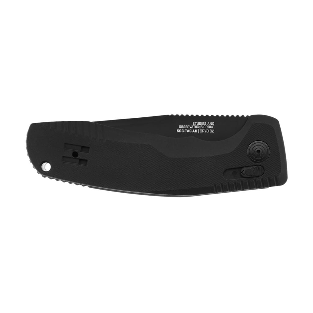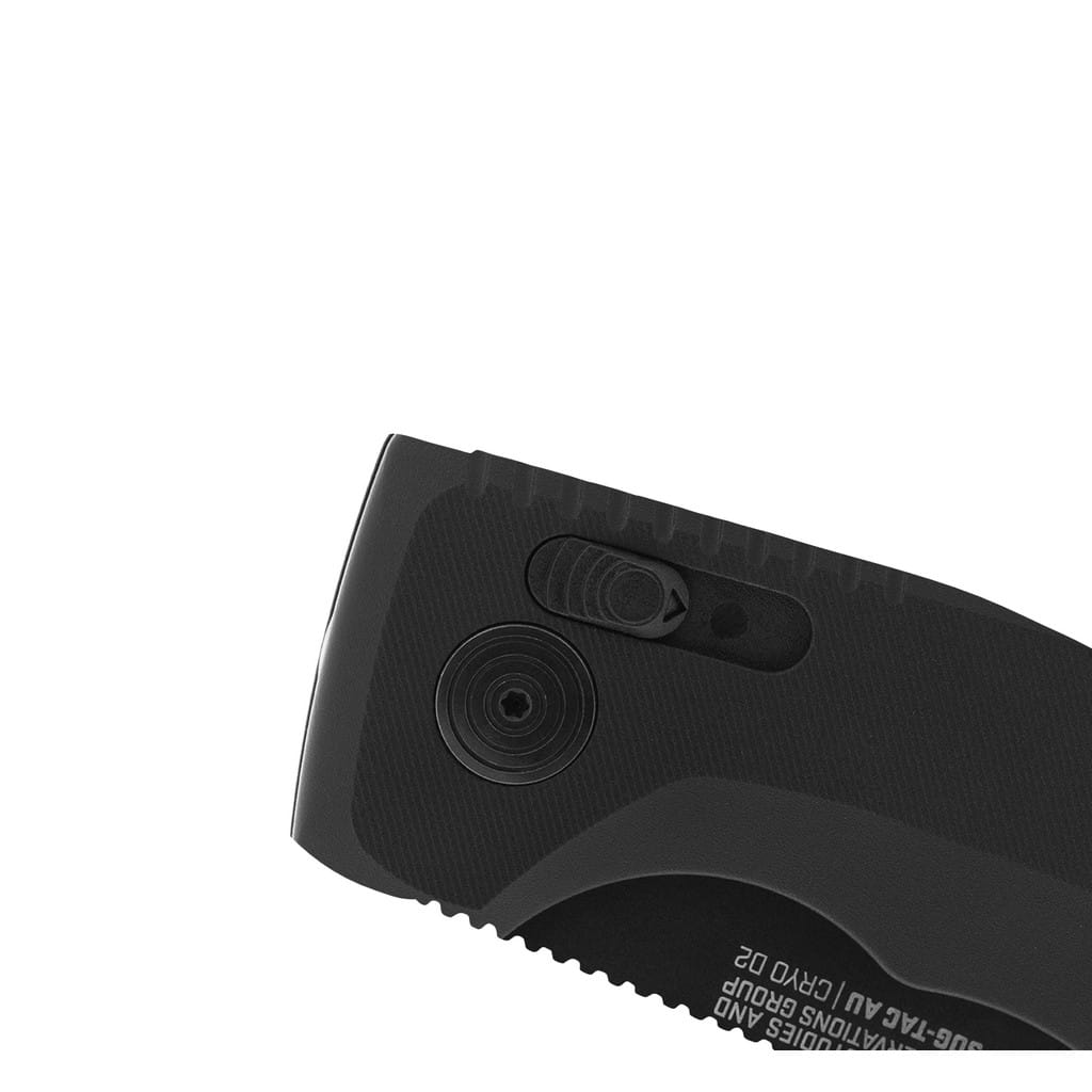 Automatyczny model SOG-TAC AU to idealne rozwiązanie dla umundurowanych profesjonalistów charakteryzujące się niezawodnością i funkcjonalnością działania. Wyprodukowany w USA przez firmę Sog stanowi muskularny folder o niezwykłej użyteczności zarówno dla wojska, służb ratowniczych, jak i wszystkich miłośników taktycznych ostrych zabawek. Ostrze o profilu Drop Point zostało wykonane z wysokiej jakości stali narzędziowej Cryo D2 poddanej kriogenicznej obróbce cieplnej, dzięki czemu pozostaje ona dłużej ostra i jest bardziej odporna na pęknięcia i wykruszenia. Pokryto ją czarnym azotkiem tytanu wykazującym mniejszą podatność na zarysowania oraz chroniącym przed korozją i odblaskami. Ergonomicznie wyprofilowana i teksturowana rękojeść z anodyzowanego na czarno aluminium gwarantuje dobrą przyczepność do dłoni i komfortową pracę w każdych warunkach pogodowych. Dodatkowo karbowany backspacer i grzbiet klingi zwiększają kontrolę nad folderem. Innowacyjna blokada AU-XR Lock zapewnia bezpieczeństwo użytkowania w postaci podwójnego zabezpieczenia suwaka znajdującego się na chwycie, służącego zarówno do wysuwanie ostrza jak i składania noża. Taki mechanizm zapobiega przypadkowemu uruchomieniu, a także dostarcza szybkość działania w każdej sytuacji oraz pozwala na łatwą obsługę jedną ręką. Konstrukcję uzupełnia otwór na linkę oraz dwupozycyjny klips mocujący do wygodne przenoszenie narzędzia w kieszeni spodni lub przy wyposażeniu.