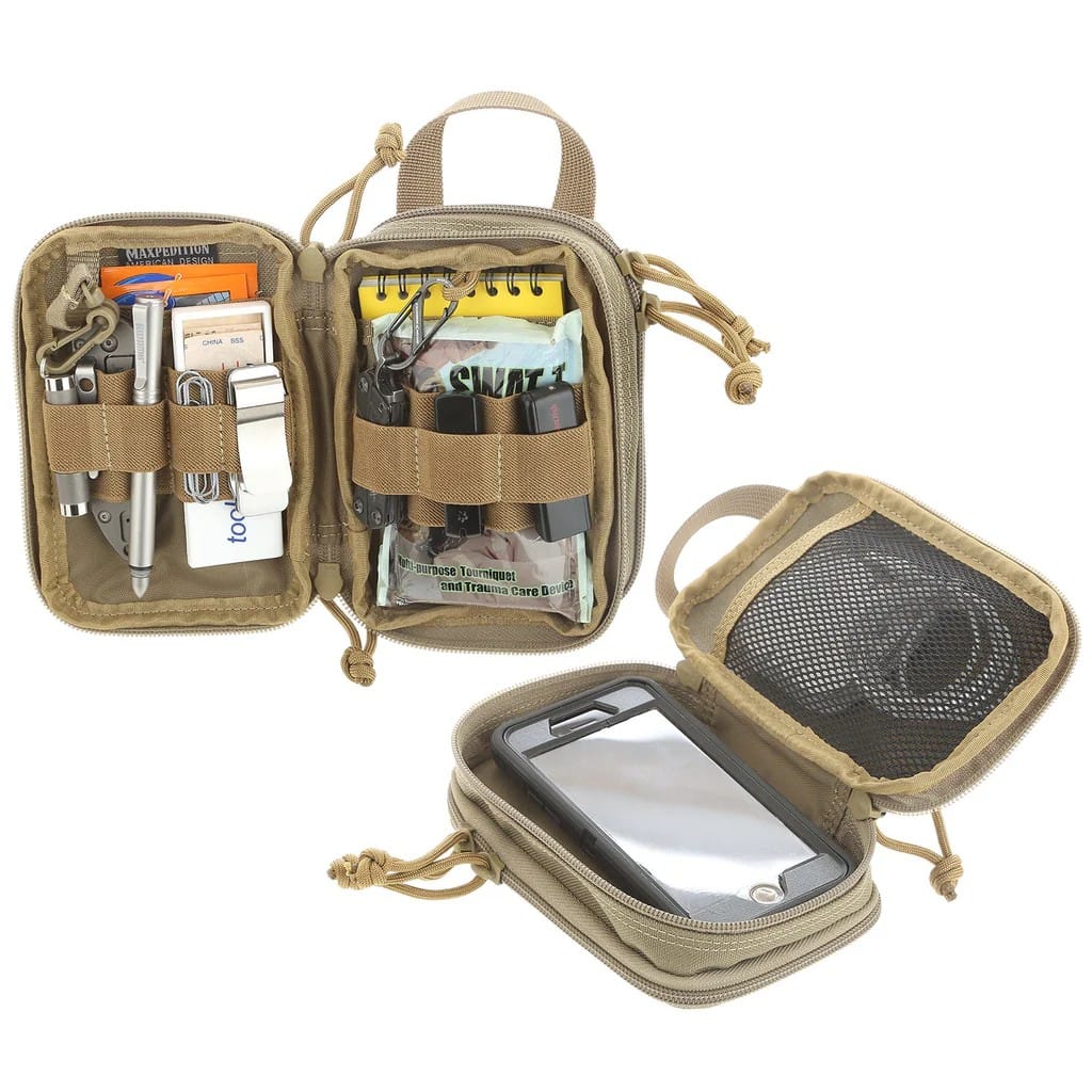 Nowy wzór organizera od Maxpedition, charakteryzuje się podwójną komorą, przednią na drobiazgi (folder, latarka, długopisy, kable, etc.) i tylną z przeznaczeniem na powerbank lub telefon. Pouch jest porządnie uszyty, zamki działają jak należy, możliwość przytroczenia do plecaka za pomocą systemu MOLLE to już standard. Jedyne co chciałbym zmienić w tym projekcie, to "odwrócenie" wzorca tylnej komory: moim zdaniem głębsza powinna być ścianka tył, a nie ścianka przód, ale mimo tego, kieszeń jest bardzo użyteczna. Zwiń