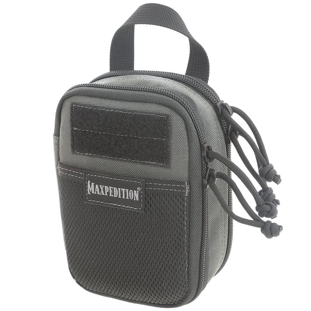 Double-Decker Mini to podwojona wersja jednego z najlepiej sprzedających się organizerów firmy Maxpedition, modelu 0259. Saszetka została wzbogacona o drugą, dużą komorę zawierającą jedynie kieszeń z siatki. Przestrzeń ta znacznie zwiększa pojemność produktu i pozwala na przechowywanie dużej ilości drobnych akcesoriów. Pierwsza komora charakteryzuje się naszytymi elastycznymi taśmami do bezpiecznego wsuwania przedmiotów. Takie rozwiązanie umożliwia dobre wykorzystanie dostępnego miejsca i świetną organizację bibelotów. W jej wnętrzu znajdują się również dwie otwarte kieszenie oraz karabińczyk do kluczy i pętelka mocująca. Na froncie umieszczono panel Velcro na naszywki, a także kieszeń z siatki zamykaną na rzep. Obie komory główne posiadają dwustronne, wysokiej jakości zamki błyskawiczne z uchwytami z paracordu, co istotnie poprawia komfort użytkowania. Organizer można całkowicie otworzyć uzyskując pełny dostęp do spakowanej zawartości. Na tyle saszetki występują trzy taśmy kompatybilne z systemem Molle/Pals, tworzące dwie kolumny służące do troczenia kieszeni do innego ekwipunku. W tym celu należy dokupić osobno właściwe taśmy 3” TacTie Maxpedition. Model 0258 wykonano z wysokiej jakości nylonu 1050-D odpornego na ścieranie i działanie wody. Dodatkowo pokrycie materiału powłoką teflonową chroni przed zabrudzeniami i ułatwia czyszczenie. Wszystko to, w połączeniu z dbałością o szczegóły i realizacją projektu na najwyższym poziomie, gwarantuje satysfakcję i zadowolenie przez długie lata.