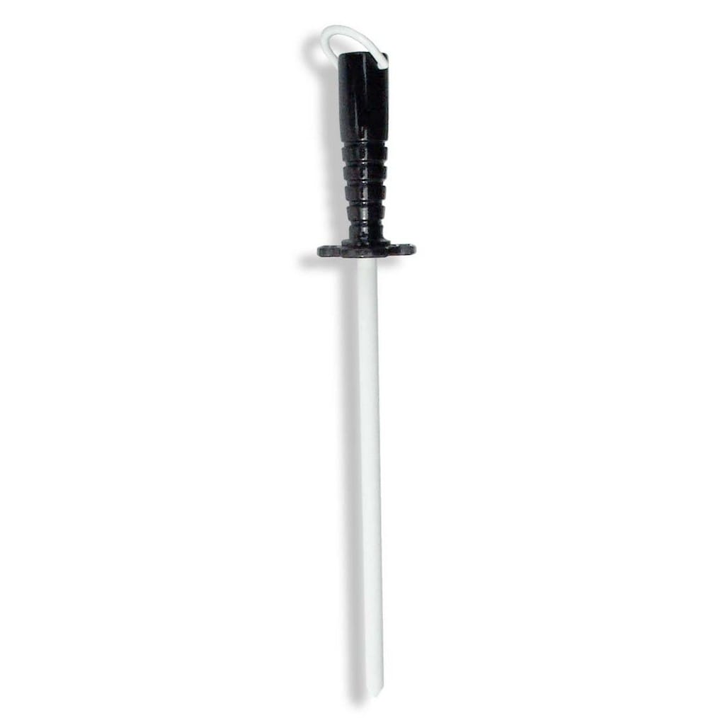 Profesjonalna diamentowa ostrzałka amerykańskiej firmy DMT o gradacji Extra Fine równej 1200. Wygodna rękojeść z tworzywa sztucznego gwarantuje komfortowy chwyt a duża garda zabezpiecza dłoń. Na jej zakończeniu znajduje się zielony uchwyt, dzięki któremu możemy zawiesić osełkę w wybranym miejscu i szybko rozróżnić jaką ma ona ziarnistość. Owalny model doskonale sprawdzi się w kuchni do ostatecznego polerowania i wygładzania krawędzi tnącej noży, sztućców czy innych domowych narzędzi. Ostrzałka nie wymaga stosowania żadnych olejków, które brudzą wszystko wokół, jest niezwykle prosta i wygodna w użyciu. Możemy ostrzyć każdy typ nawet najtwardszej stali na sucho lub przy użyciu wody. Wytrzymała konstrukcja kamienia gwarantuje długie lata wydajnej i niezawodnej pracy. Firma DMT to rozpoznawalny światowy lider produkcji diamentowych ostrzałek posiadający w swojej ofercie szeroki wybór modeli do ostrzenia, które spełniają oczekiwania nawet najbardziej wymagających użytkowników.