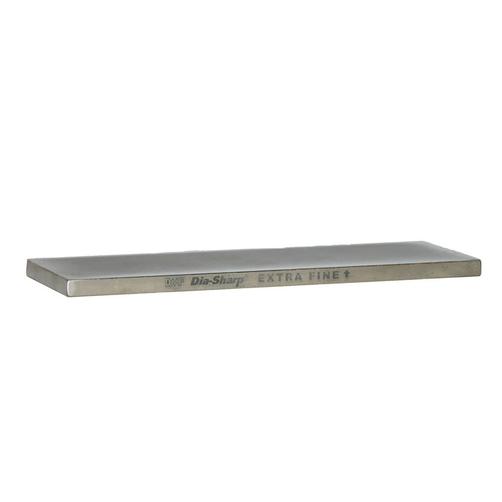 Firma DMT to rozpoznawalny światowy lider produkcji diamentowych ostrzałek posiadający w swojej ofercie szeroki wybór produktów do ostrzenia. Model D6EF to płaski dwustronny kamień należący do serii Dia-Sharp charakteryzującej się jednolitą powierzchnią płytki stalowej, na której nałożone są wyłącznie diamenty monokrystaliczne. Osełki DMT dzięki temu są zdecydowanie bardziej odporne na zużycie w porównaniu do tańszych odpowiedników wykonanych z diamentu polikrystalicznego. Płytka oferuje dwa typy gradacji Fine równą 600 oraz Extra Fine 1200, z pomocą których szybko przywrócimy ostrość lekko stępionym ostrzom oraz wygładzimy i wypolerujemy krawędź tnącą. Ostrzałka doskonale sprawdzi się zarówno w kuchni jak i w warsztacie do noży o wszelakim przeznaczeniu, scyzoryków, dłut oraz innych narzędzi. Nie wymaga stosowania żadnych olejków, które brudzą wszystko wokół, jest niezwykle prosta i wygodna w użyciu. Możemy ostrzyć każdy typ nawet najtwardszej stali na sucho lub przy użyciu wody. Wytrzymała konstrukcja kamienia gwarantuje długie lata wydajnej i niezawodnej pracy. Ostrzałki DMT produkowane są w unikalny sposób techniką chronioną przez producenta. W procesie tym na płytkę metalową nanoszony jest pył diamentowy o określonej gradacji. W wyniku tego procesu sama płytka metalowa może ulec porysowaniu lub też zmatowieniu również na powierzchni ściernej. Jest to normalna cecha produktu i nie zmniejsza to walorów użytkowych ostrzałek. Firma DMT wychodzi z założenia, że jej produkty mają być bezkonkurencyjne w ostrzeniu noży i takie właśnie są, sam wygląd zewnętrzny nie jest stawiany na pierwszym miejscu, bo liczą się tutaj walory użytkowe produktu. To właśnie dzięki tym unikalnym walorom firma zyskała zwolenników na całym świecie.