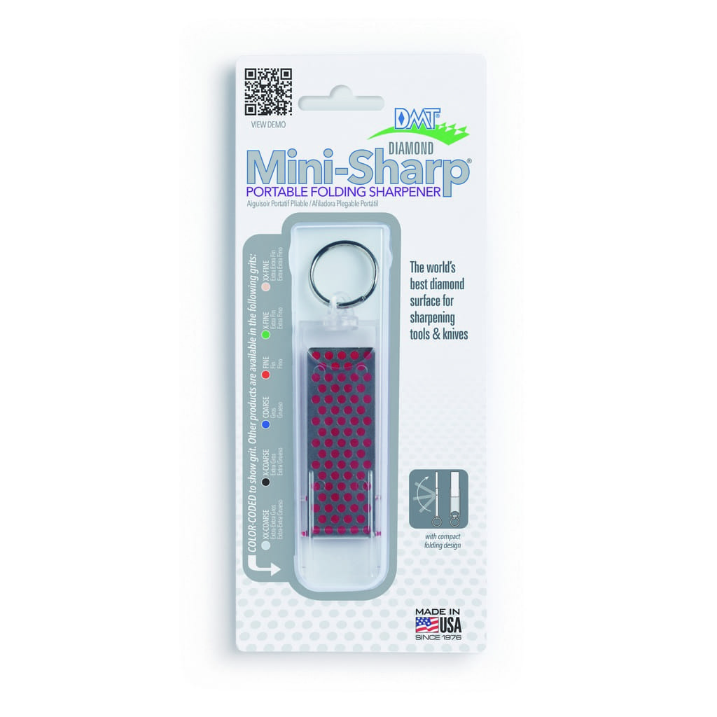Firma DMT to rozpoznawalny, światowy lider w produkcji diamentowych ostrzałek posiadający w swojej ofercie szeroki wybór modeli do ostrzenia. Jednym z nich jest kieszonkowy kamień Mini-Sharp o gradacji Fine równej 600. Służy do szybkiego przywrócenia ostrości lekko stępionym ostrzom. Ostrzałka jest niezwykle prosta i wygodna w użyciu, nie wymaga stosowania żadnych olejków, które brudzą wszystko wokół. Możemy ostrzyć każdy typ stali na sucho lub przy użyciu wody. Wytrzymała konstrukcja kamienia gwarantuje długie lata wydajnej oraz niezawodnej pracy. Składany uchwyt z tworzywa sztucznego chroni osełkę gdy nie jest używana oraz zabezpiecza przed uszkodzeniem podczas transportu. Kółko mocujące pozwala na doczepnie jej do kluczy lub suwaka przy plecaku i noszenie jako breloka, tak aby zawsze był pod ręką gdy zajdzie potrzeba ostrzenia. Ten kompaktowy i lekki model znajdzie swoje zastosowanie zarówno na polowaniu, campingu czy wyprawie survivalowej ale również i w kuchni.