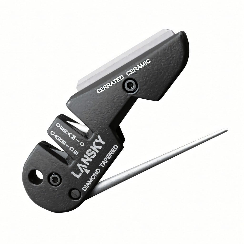 Poręczna ostrzałka, przydatna w domu jak i po za nim. Plus za to że jest diamentowa dzięki czemu powinna służyć lata. Ostrzę nią noże kuchenne na kącie 20 oraz Victorinox Forester na kącie 17, po zabiegu ostrza śmiało idą przez kartkę. Zwiń