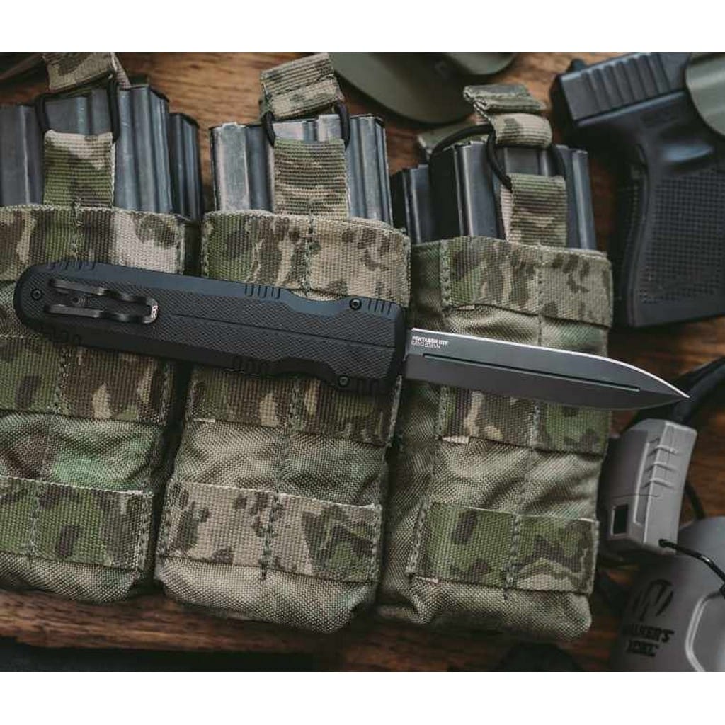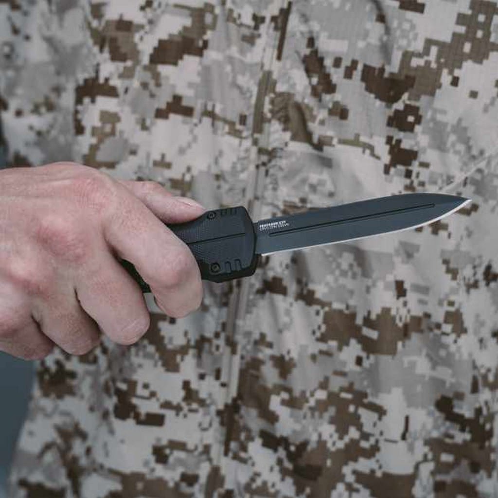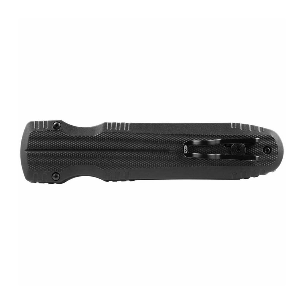 Pentagon OTF to automatyczny, wysokiej jakości nóż składany wyprodukowany w USA przez firmę SOG. Model został zaprojektowany, aby sprostać wymaganiom użytkowników poszukujących niezawodnego foldera do codziennej pracy, łatwego w obsłudze jedną ręką i szybkiego w działaniu. System blokujący Dynamic Lock-up to wydajna technologia stworzona dla profesjonalistów, organów ścigania i żołnierzy. Szybkie i dynamiczne wysunięcie ostrza możliwe jest za pomocą znajdującego się na rękojeści dużego przycisku o antypoślizgowej powierzchni z wieloma punktami przyczepności. Ogromna siła utrzymuje bezpiecznie głownię w pozycji otwartej chroniąc przed jej przypadkowym złożeniem się. Grzechotkową konstrukcję, jak miało to miejsce w starszych modelach OTF,  wyeliminowano, a tym samym problem rozwiązano. Model posiada smukłe ostrze Spear Point o obustronnie naostrzonej krawędzi tnącej, dlatego charakteryzuje się tak bardzo dobrymi zdolnościami penetrującymi i nadaje się do pchnięć. Wykonano je z amerykańskiej stali nierdzewnej klasy premium CRYO CPM S35VN poddanej kriogenicznej obróbce cieplnej, dzięki czemu zyskuje ona swoje optymalne właściwości, zaś dodatek wanadu i niobu podnoszą odporność na zużycie. Klingę pokryto czarnym azotkiem tytanu zwiększającym ochronę przed zarysowaniami, korozją oraz odblaskami. Aluminiowa rękojeść dzięki specjalnej powłoce poprawia przyczepność do dłoni, a jej karbowane krawędzie wpływają na lepszą kontrolę nad nożem. Konstrukcję uzupełnia klips mocujący umożliwiający wygodne przenoszenie narzędzia w kieszeni spodni lub przy wyposażeniu. Pentagon OTF to profesjonalna i sprawdzona propozycja foldera taktycznego, na którym można polegać w każdej sytuacji i liczyć na komfortową pracę.