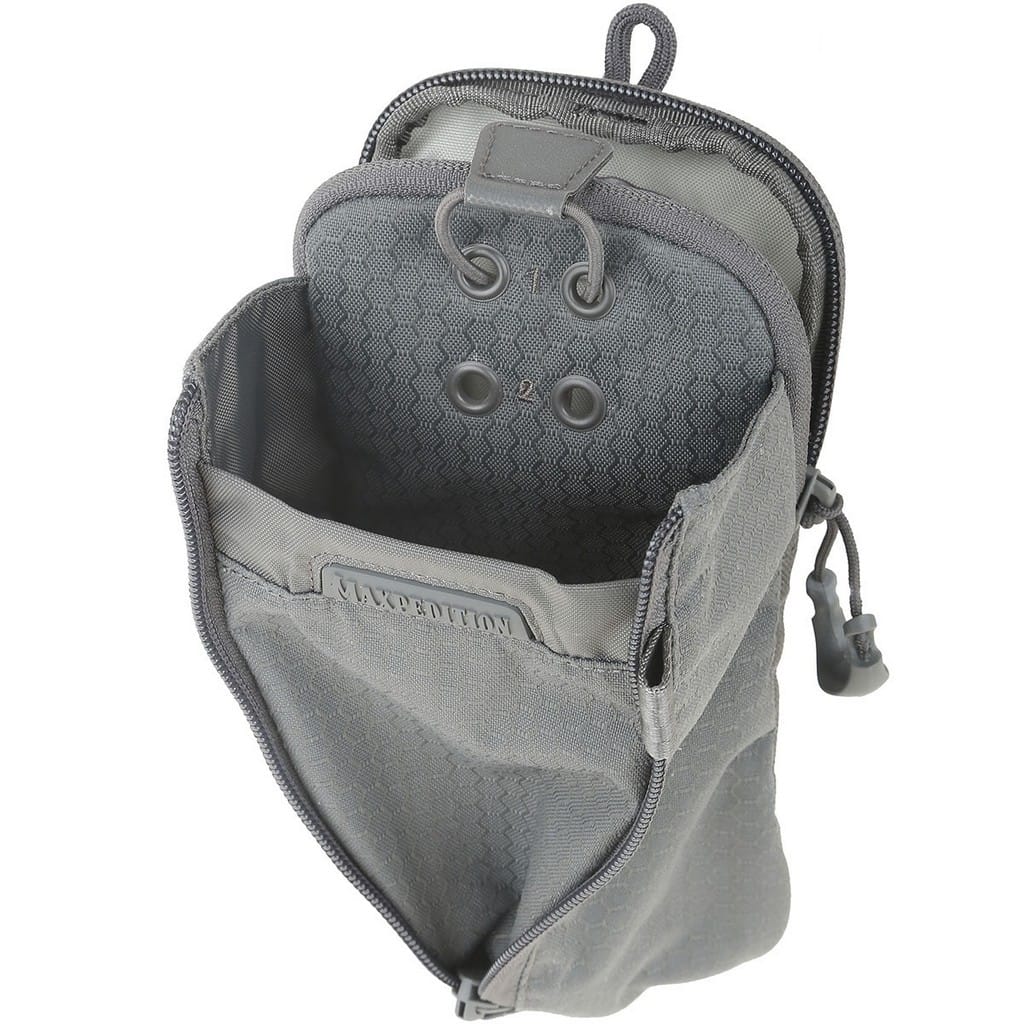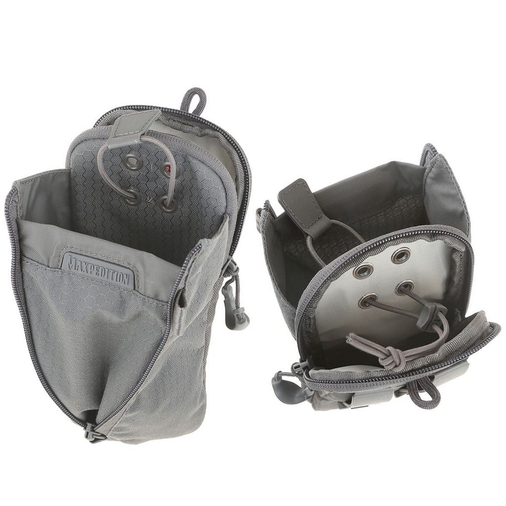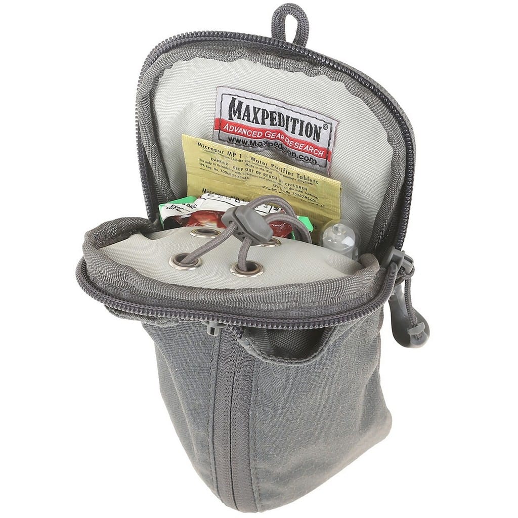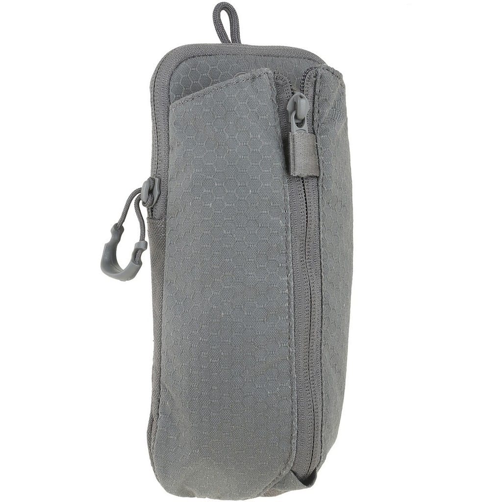 Pokrowiec firmy Maxpedition kompatybilny z systemem Molle, pozwalający na wygodny montaż do plecaków czy toreb. Pasuje do powszechnie dostępnych butelek, a w tym modeli z szerokim wlewem firmy Nalgene o pojemności jednego litra. W przypadku butli z większą średnicą mamy możliwość zwiększenia szerokości komory poprzez rozsuniecie zamka błyskawicznego. Dwupozycyjny ściągacz z elastycznej linki służy do bezpiecznego zaczepienia pojemników o różnej wysokości. Tylna kieszeń zamykana na suwak zakończony wygodnym uchwytem z tworzywa dostarcza miejsce na drobne akcesoria jak tabletki do uzdatniania wody, czy podręczną apteczkę. Ogromną zaletą modelu są dwa polimerowe mocowania TacTie znajdujące się w zestawie, dzięki którym możemy doczepić pokrowiec do wyposażenia lub zamocować przy pasie. Rozwiązanie to nie wymaga dodatkowych pasków, które w przypadku innych produktów Maxpedition należy dokupić oddzielnie, aby móc je zamontować do ekwipunku.
