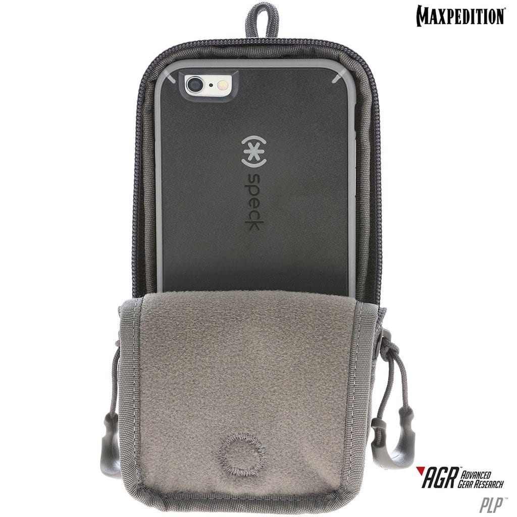PLP to pokrowiec pochodzący z najnowszej serii AGR firmy Maxpedition. W porównaniu do standardowych modeli producenta wyróżnia się nowoczesnym designem i jeszcze większą funkcjonalnością. Ogromną zaletą jest znajdujące się w zestawie polimerowe mocowanie TacTie, które pozwala na przenoszenie etui przy pasie, plecaku lub torbie zgodnej z systemem Molle/Pals. Nie wymaga dodatkowych pasków, które w przypadku innych produktów Maxpedition należy dokupić oddzielnie, aby móc je montować do wyposażenia. Pokrowiec został zaprojektowany na popularne modele iPhone, ale z powodzeniem możemy wykorzystać go również na inne smartfony i telefony o podobnych rozmiarach do tych dedykowanych wersji Apple. Kieszeń może posłużyć także jako etui na portfel, dokumenty lub inne cenne drobiazgi. Wnętrze wykonano z miękkiego i przyjemnego materiału, który bardzo dobrze ochrania przenoszoną zawartość. Łatwy i szybki dostęp do wnętrza umożliwia dwustronny zamek błyskawiczny YKK, a wygodne otwieranie zapewniają duże uchwyty z tworzywa.