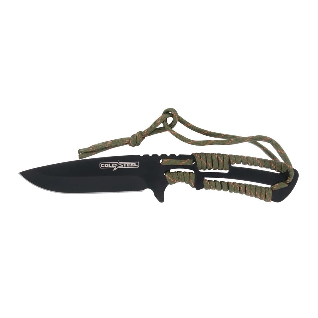 Zestaw trzech wytrzymałych i świetnie wyważonych noży do rzucania wyprodukowanych przez amerykańską firmę Cold Steel. Każdy egzemplarz wykonano z jednego kawałka stali nierdzewnej 420, a dla ochrony przed rysowaniem się powierzchni pokryto czarną oksydą. Rękojeści w celu poprawy komfortu chwytu owinięto paracordem w oliwkowym odcieniu. Dodatkowo w sytuacji awaryjnej linkę z powodzeniem możemy wykorzystać do innych zastosowań, które pomogą nam przetrwać. Te aerodynamiczne, o idealnych proporcjach noże są doskonałym wyborem do precyzyjnego rzucania nawet na duże odległości. Narzędzia z powodzeniem możemy także wykorzystać do cięcia, krojenia, gdyż posiadają ostrą i funkcjonalną głownię Clip Point, a karbowany grzbiet klingi stanowi dobre podparcie pod palec podczas pracy. Do zestawu dołączono nylonową pochwę pozwalającą na przymocowanie jej do pasa i bezpieczne transportowanie wszystkich trzech noży blisko ciała.