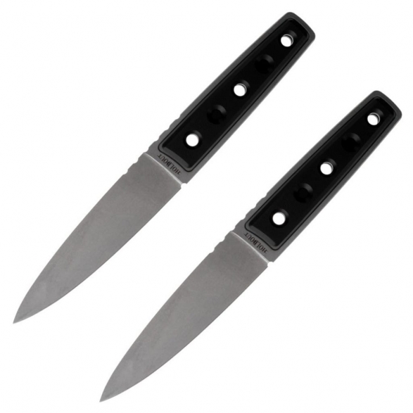Stickman Holdout to zestaw dwóch noży zaprojektowanych przez firmę Cold Steel do rzucania. Narzędzia charakteryzują się trwałą konstrukcją full tang i precyzją wykonania, którą docenią zarówno entuzjaści nożowi, jaki i prefesjonaliści. Ostrza zrobiono ze stali nierdzewnej 420 wykończonej metodą Stonewash dobrze maskującą rysy powstające podczas eksploatacji. Na grzbiecie głowni znajduje się karbowane oparcie dla kciuka, co poprawia bezpieczeństwo użytkowania. Antypoślizgowe okładziny rękojeści, z odpornego na warunki atmosferyczne materiału G10, gwarantują komfortowy i pewny chwyt, nawet w mokrej lub spoconej dłoni. Całość dopełnia nylonowa pochwa do wygodnego transportowania obu rzutek blisko ciała, na pasku spodni. Zestaw stanowi idealne narzędzie do doskonalenia umiejętności celnego rzucania do tarczy.