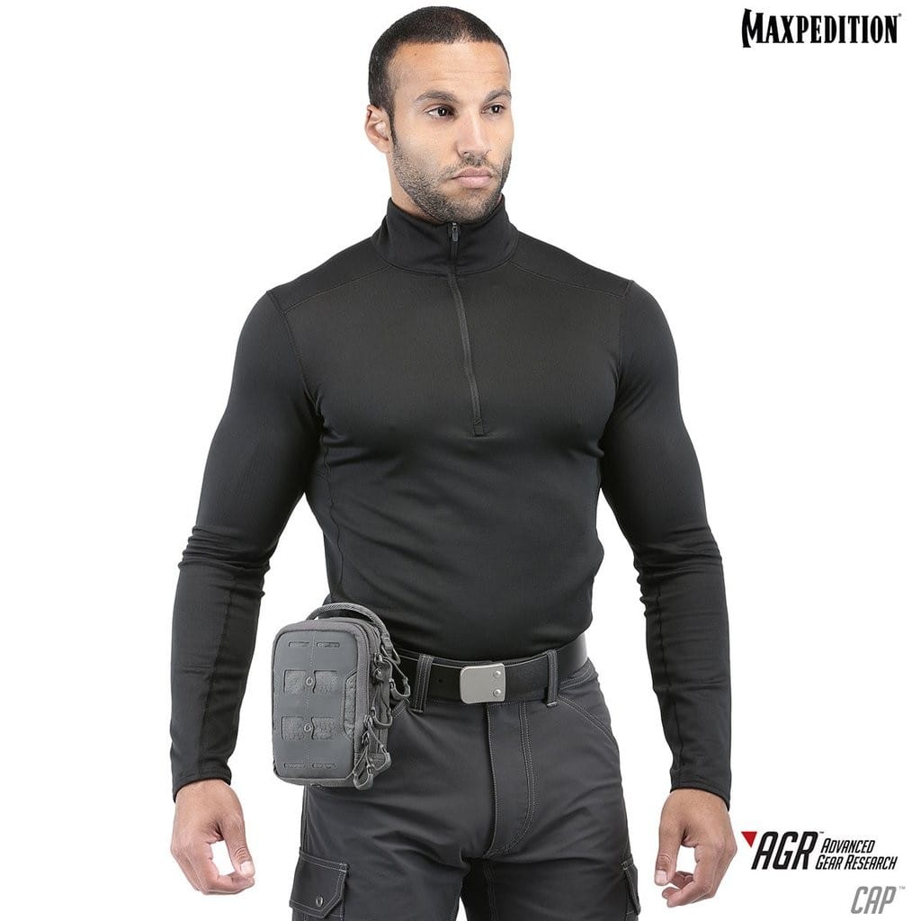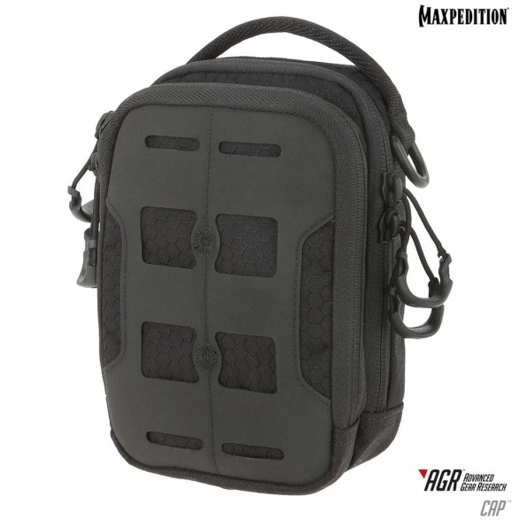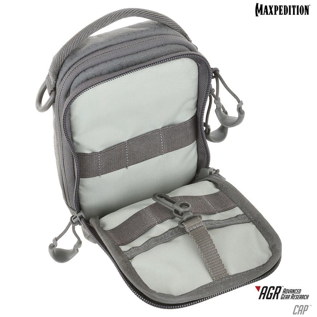 Kieszeń CAP (Compact Admin Pouch) to model pochodzący z najnowszej serii AGR od firmy Maxpedition. Saszetka w porównaniu do standardowych produktów producenta zdecydowanie odróżnia się wyglądem. Ogromną jej zaletą są dwa polimerowe mocowania TacTie znajdujące się w komplecie, dzięki którym możemy doczepić ją do plecaka czy kamizelki lub zamocować przy pasie. Nie wymaga dodatkowych pasków, które w przypadku innych produktów Maxpedition należy dokupić oddzielnie, aby móc montować je do wyposażenia. Model jest bardzo pojemny i pozwala na schowanie sporej ilości drobiazgów oraz ich właściwe posegregowanie dzięki elastycznym taśmom i wewnętrznym przegrodom. Przednia kieszeń dodatkowo posiada zamocowany karabińczyk doskonały na dopięcie kluczy. Szeroki i łatwy dostęp do wnętrza zapewnia dwukierunkowy wysokiej jakości zamek błyskawiczny, a uchwyty na nim pozwalają na wygodne rozsuwanie. Dodatkowo front saszetki jest kompatybilny z systemem Molle, co pozwala na montaż innych kieszeni, jeśli zajdzie taka potrzeba.