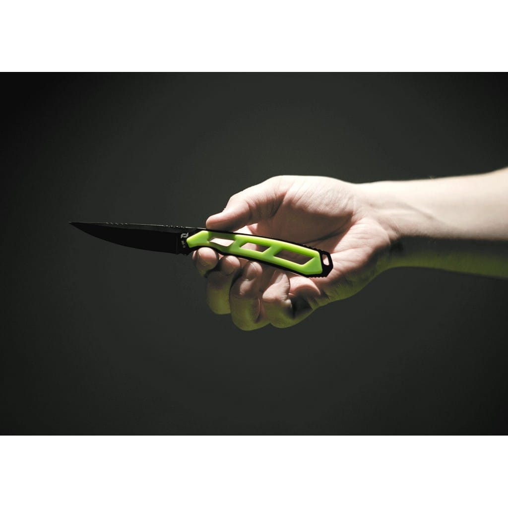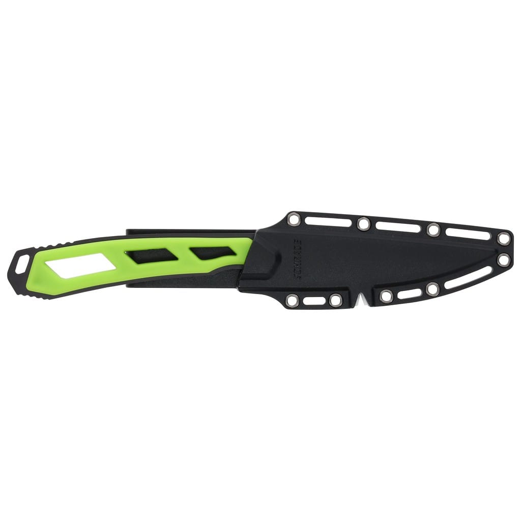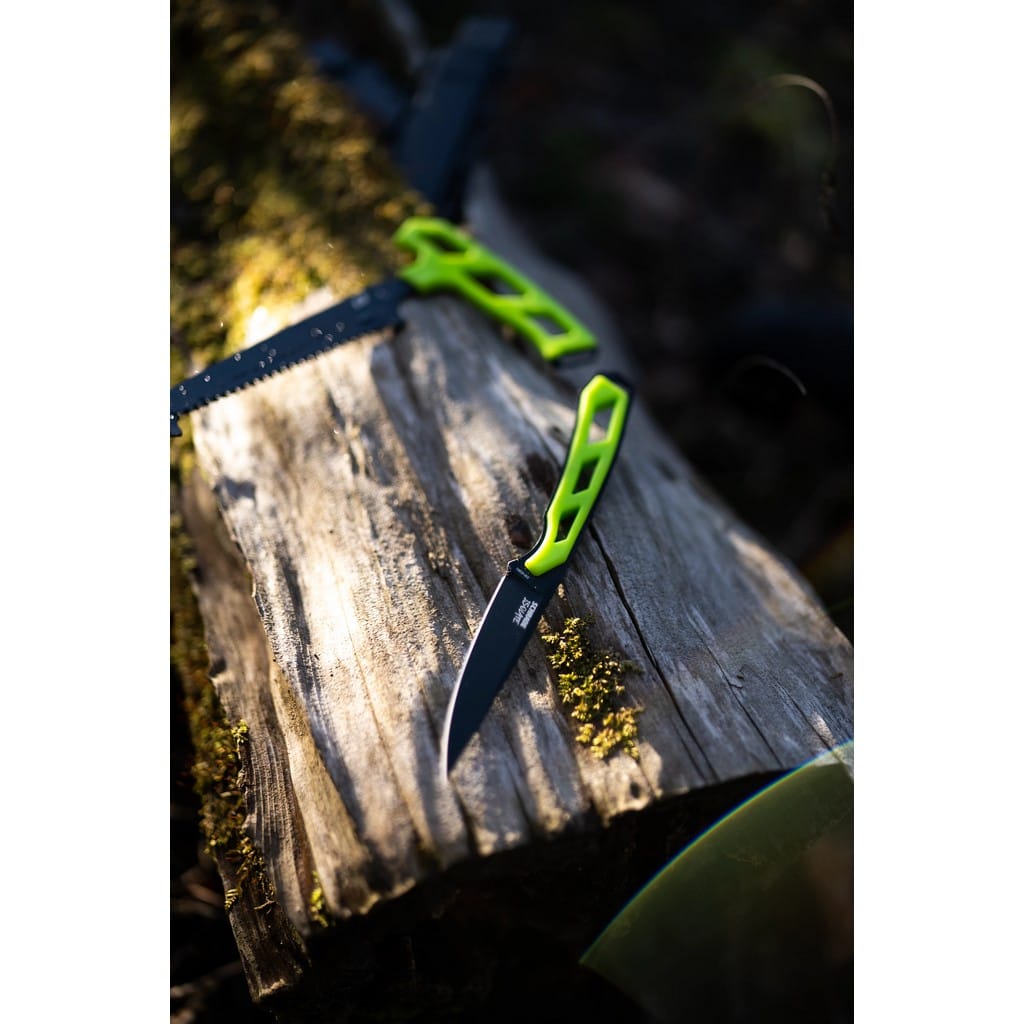 Seria narzędzi Isolate została stworzona przez firmę Schrade dla myśliwego, poszukującego solidnego i lekkiego sprzętu. Model Caper to świetny towarzysz na polowanie, który nie obciąży ekwipunku, a dzięki wytrzymałej konstrukcji full tang poradzi sobie z niejednym zadaniem. Wąskie ostrze o profilu Drop Point zrobiono ze stali nierdzewnej AUS-10 i pokryto czarną oksydą zabezpieczającą przed odblaskami i negatywnym działaniem czynników zewnętrznych. Karbowania na grzbiecie noża, stanowiące stabilne wsparcie dla palców, poprawiają bezpieczeństwo podczas pracy. Szkieletowa rękojeść minimalizuje wagę konstrukcji, lecz nadal gwarantuje pewny chwyt. Okładziny wykonano z antypoślizgowego tworzywa w jaskrawym kolorze, który ułatwi odnalezienie narzędzia, gdy zgubimy je w terenie. Na zakończeniu znajduje się otwór na linkę umożliwiający przełożenie paracordu i stworzenie oplotu na nadgarstek. Do zestawu dołączono pochwę z formowanego tworzywa, z wbudowaną ceramiczną ostrzałką. Z jej pomocą możemy wygodnie transportować nóż na pasku spodni, blisko ciała oraz szybko naostrzyć krawędź tnącą, gdy ulegnie stępieniu.