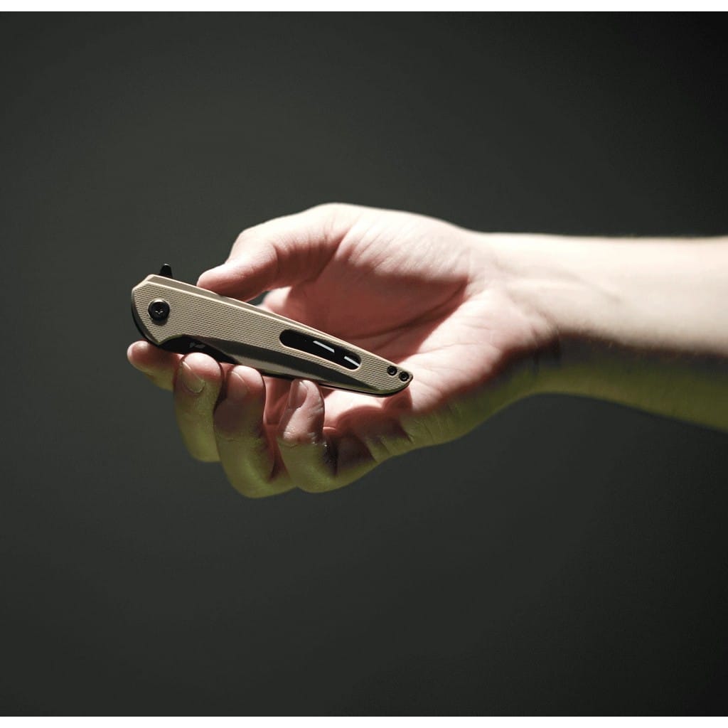 Kinetic firmy Schrade to połączenie funkcjonalności z nowoczesnym designem. Model świetnie sprawdzi się jako folder EDC oraz do codziennych zadań w pracy lub w domu. Głownia o profilu Drop Point została wykonana z japońskiej stali nierdzewnej AUS-8 długo utrzymującej właściwą ostrość krawędzi tnącej. Pokryto ją czarną oksydą zabezpieczającą przed korozją, odblaskami i zarysowaniami. W szybkim rozłożeniu klingi jedną ręką pomaga flipper, pełniący jednocześnie funkcję jelca, zaś mechanizm łożysk kulkowych Ultra Glide wpływa na płynną pracę narzędzia. Wytrzymała blokada Liner Lock zapewnia bezpieczeństwo podczas użytkowania. Rękojeść z wytrzymałego i lekkiego tworzywa G10 charakteryzuje się antypoślizgową fakturą, co zwiększa przyczepność do dłoni. Jej ergonomiczne wyprofilowanie zapewnia komfort i gwarantuje pewnu chwyt. Konstrukcję uzupełnia klips mocujący służący do wygodnego transportowania noża w kieszeni spodni lub przy wyposażeniu.