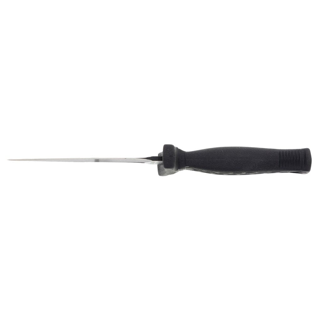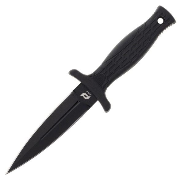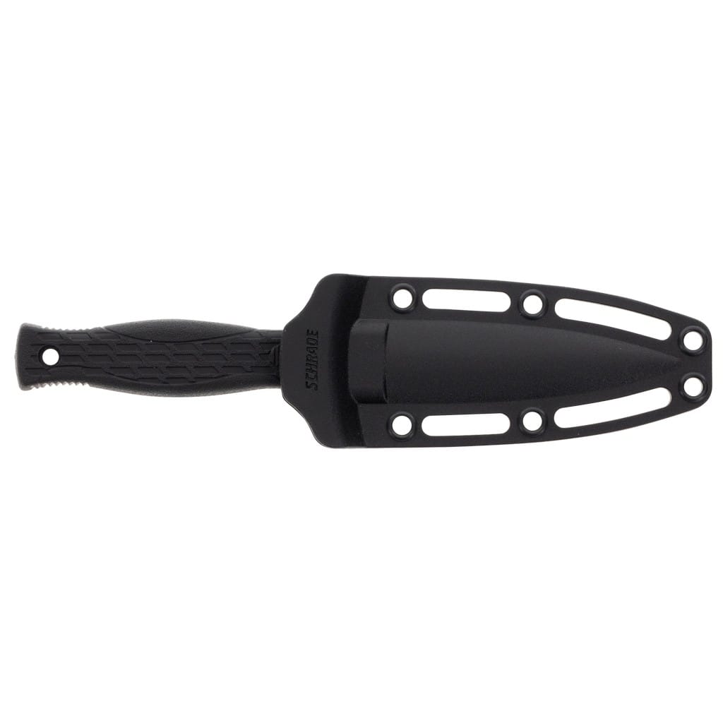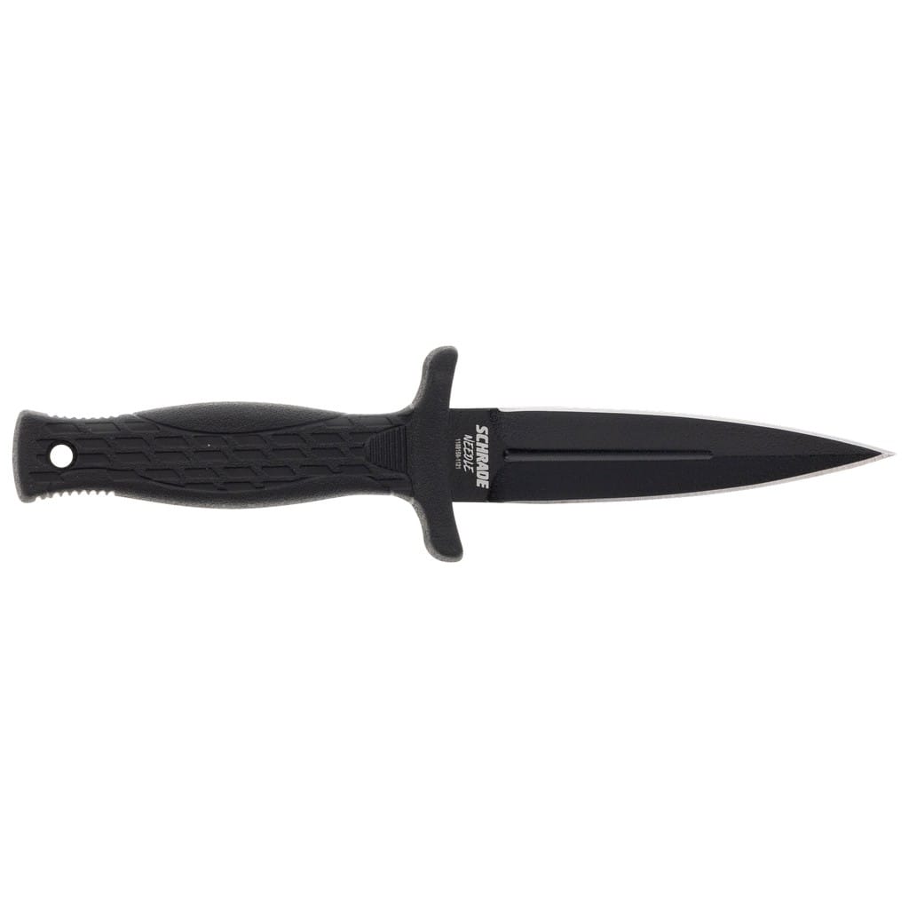 Model Needle firmy Schrade to prawdziwy towarzysz którego nas nie zawiedzie. Jego agresywna sylwetka i obosieczne ostrze doskonale nadaje się do pchnięć, przekłuwania i ostrego cięcia. Głownia o profilu Dagger została wykonana z japońskiej stali nierdzewnej AUS-8, twardej i dobrze trzymającej ostrość. W celu ochrony przed korozją, negatywnym działaniem czynników zewnętrznych i odblaskami pokryto ją czarną oksydą. Duży obustronny jelec zabezpiecza palce przed ich przypadkowym zsunięciem się na krawędź tnącą podczas intensywnej pracy z nożem. Odpowiednio wyprofilowana rękojeść, pokryta warstwą gumy o antypoślizgowej fakturze, zapewnia dobry chwyt nawet w wilgotnych dłoniach lub w rękawicy. Na zakończeniu znajduje się otwór na linkę umożliwiający przełożenie paracordu i stworzenie oplotu na nadgarstek. Do zestawu dołączono pochwę z formowanego tworzywa z klipsem mocującym, aby ułatwić wygodne transportowanie narzędzia blisko ciała. Dodatkowo liczne otwory na jej krawędzi pozwalają na doczepienie całości do plecaka lub kamizelki.