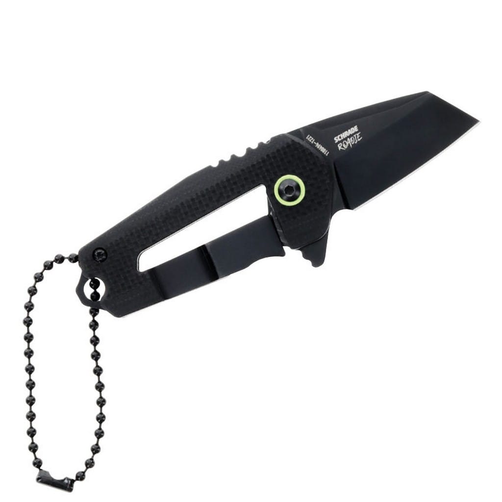 Roadie to nieduży nóż składany zaprojektowany przez amerykańską firmę Schrade z myślą o przenoszeniu przy kluczach w formie breloka. Umożliwia to otwór znajdujący się na zakończeniu chwytu wraz z zamocowanym krótkim łańcuszkiem kulkowym. Ostrze o charakterystyce Wharncliffe zostało wykonane ze stali nierdzewnej AUS-10, a w celu ochrony przed korozją i odblaskami pokryto czarną oksydą. W szybkim rozłożeniu klingi pomaga duży flipper, pełniący jednocześnie funkcję jelca, a mechanizm łożysk kulkowych Ultra Glide wpływa na płynną pracę narzędzia. Niezawodna blokada Frame Lock zapewnia użytkownikowi bezpieczeństwo podczas pracy. Kompaktowa rękojeść z antypoślizgowego tworzywa G10 z głębokiem wyprofilowaniem pod palec gwarantuje pewny chwyt.