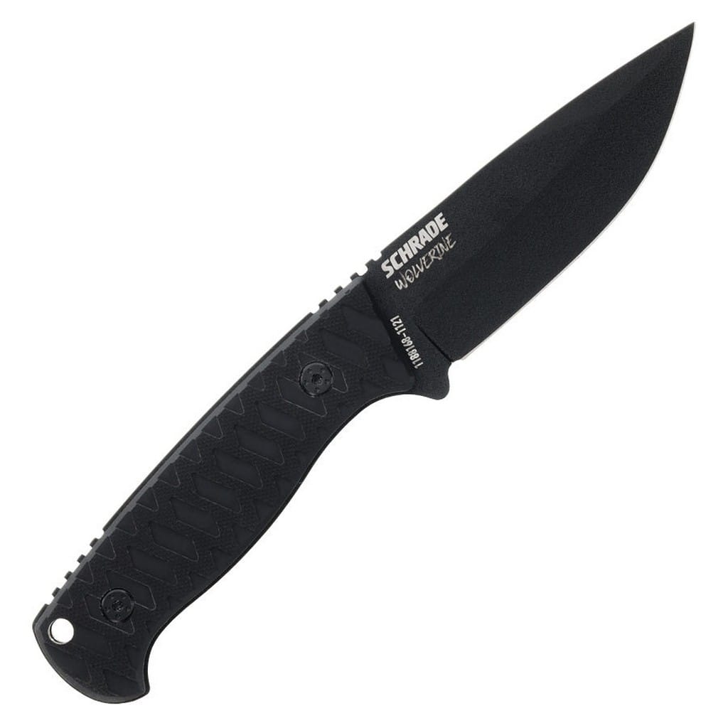 Schrade Wolverine to model, który nie chodzi na skróty, z jego pomocą wykonamy każde zadanie, a praca stanie się przyjemnością. Głownia o uniwersalnym profilu Drop Point została zrobiona ze stali nierdzewnej AUS-10 i pokryta grafitową powłoką teflonową zabezpieczającą przed korozją i odblaskami. Grzbiet noża posiada karbowane odcinki, co stanowi bezpieczne podparcie dla ręki podczas użytkowania, a flipper chroni palce przed ich przypadkowym zsunięciem się na krawędź tnącą. Konstrukcja full tang, czyli z jednego kawałka stali, zwiększa wytrzymałość i możliwości narzędzia w terenie. Rękojeść z lekkiego i wytrzymałego tworzywa G10, dzięki odpowiedniemu wyprofilowaniu bardzo dobrze układa się w dłoni oraz gwarantuje pewny chwyt w każdych warunkach. Na jej zakończeniu znajduje się otwór na linkę umożliwiający stworzenie oplotu na nadgarstek. Do zestawu dołączono pochwę z formowanego wtryskowo tworzywa ze szlufką na pasek, aby ułatwić wygodne transportowanie noża blisko ciała. Dodatkowo liczne otwory na jej krawędzi pozwalają na doczepienie całości do plecaka lub kamizelki, a wbudowana ceramiczna ostrzałka na szybkie podostrzenie noża, gdy jesteśmy z dala od domu i cywilizacji.
