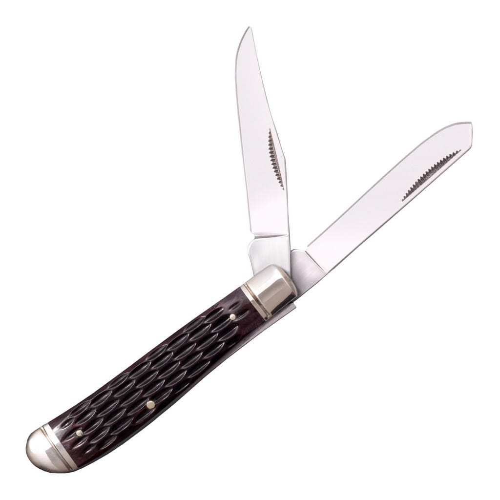 Mini Trapper firmy Cold Steel to nieduży scyzoryk zaprojektowany do codziennego użytku. Doskonale sprawdzi się w domu, w pracy, na kempingu, w lesie na grzybobraniu, podczas polowania, czy łowienia ryb. Model posiada dwa ostrza o różnych kształtach głowni, z czego każda z nich spełnia określone funkcje. Profil Clip Point stanowi uniwersalny rodzaj i jest preferowany do przekłuwania i cięcia, z kolei ostrze Spey dedykowane jest do skórowania, patroszenia. Obie klingi zostały wykonane ze stali nierdzewnej 8Cr13MoV i posiadają jednostronne, podłużne wgłębienie na paznokieć z charakterystycznymi nacięciami, służące do wysuwania ostrza. Zastosowana blokada Slip Joint powoduje, że nóż zapada się w pozycji rozłożonej dzięki sprężynie, a do jego złożenia należy użyć odpowiedniej siły. Wykończenie stali metodą Mirror-Polished pozostawia lustrzany efekt prezentujący się niezwykle spektakularnie. Gładką rękojeść z naturalnej kości barwionej na żółty kolor wzbogacono o niklowane piny. Dodatkowo błyszczące i zaokrąglone bolstery oraz idealnie spasowane okładziny wpływają na zachwycający rezultat końcowy. Scyzoryk bez problemu zmieści się w kieszeni spodni lub koszuli, dlatego możemy mieć go zawsze pod ręką gotowego do działania.