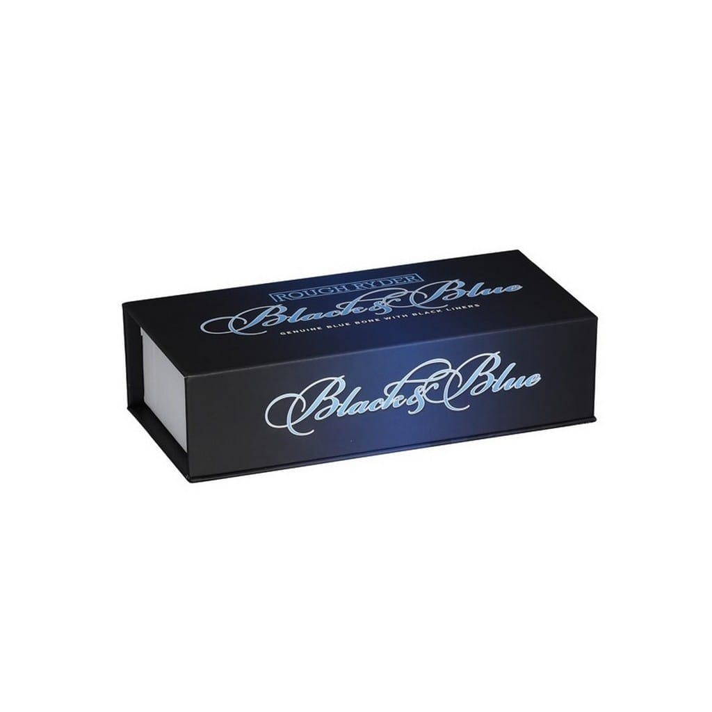 Scyzoryk należący do serii Black and Blue amerykańskiego producenta Rough Rider. Model posiada jedno ostrze o zakrzywionym do dołu drapieżnym profilu Hawkbill wykonane ze stali nierdzewnej 440A, która po stępieniu jest łatwa i przyjemna w ostrzeniu. Wykończenie głowni metodą Mirror-Polished pozostawia lustrzany efekt prezentujący się niezwykle spektakularnie. Na jednej ze stron klingi znajduje się zagłębienie na paznokieć, ozdobione charakterystycznymi nacięciami, służące do otwierania noża przy wykorzystaniu blokady sprężynowej. Rękojeść z kości barwionej na niebieski kolor wzbogacona niklowymi szpilkami cechuje się teksturowanym wzorem Sawcut Jigged poprawiający przyczepność do dłoni. Dodatkowo błyszczący i zaokrąglony bolster dodaje stylu całej konstrukcji. Produkt stanowi doskonały wybór na model EDC, który sprosta większości codziennych prac począwszy od obierania jabłka, otwierania paczek, a skończywszy na cięciu przewodów elektrycznych. Bez problemu zmieści się w kieszeni spodni lub koszuli, dlatego możemy mieć go zawsze pod ręką gotowego do działania. Scyzoryki Rough Rider to proste i niezawodne nożyki, które zadowalają użytkowników stosunkiem ceny do jakości ich wykonania. Firma posiada szeroki wybór kształtów ostrzy jak i materiałów rękojeści, co pozwoli każdemu miłośnikowi rozpoczynającemu kompletowanie swojej kolekcji znaleźć ulubiony i najbardziej odpowiadający jego preferencjom model.