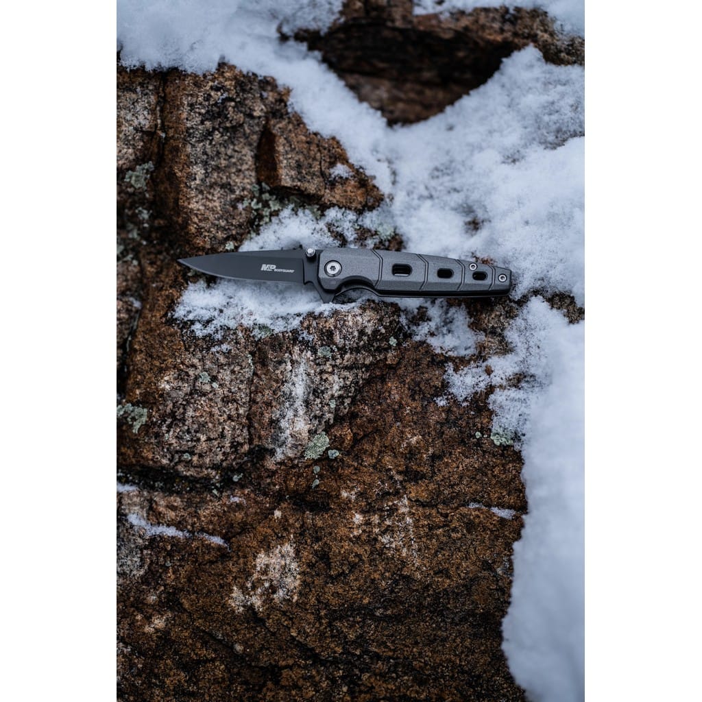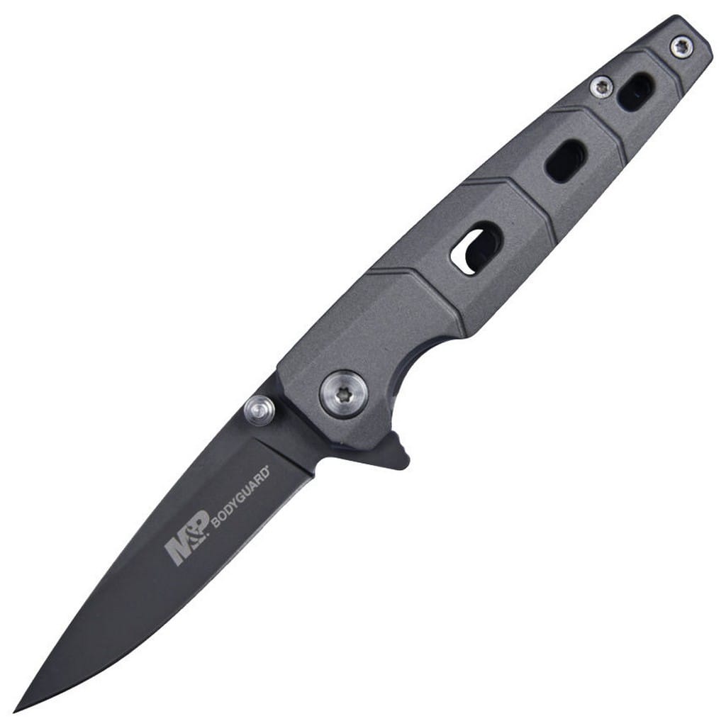 Bodyguard firmy Smith & Wesson to smukły i kompaktowy folder EDC należący do serii Military & Police. Został zaprojektowany przez jedną z najbardziej rozpoznawalnych firm na całym świecie zajmującą się produkcją broni palnej. Stanowi doskonałą propozycję dla miłośników militariów poszukujących narzędzia do codziennej pracy w domu i w terenie. Model charakteryzuje się uniwersalnym ostrzem typu Drop Point zrobionym ze stali nierdzewnej 8Cr13MoV. W celu ochrony przed korozją i odblaskami pokryto ją szarą powłoką Titanium Nitride (TiNi). W szybkim rozłożeniu klingi pomaga obustronny kołek lub duży flipper, pełniący jednocześnie funkcję jelca, a mechanizm łożysk kulkowych Ultra Glide wpływa na płynną pracę noża. Nad bezpieczeństwem podczas pracy, gdy narzędzie jest w użyciu, czuwa blokada Liner Lock. Aluminiowa rękojeść gwarantuje pewny chwyt dzięki antypoślizgowej powłoce z gumy, która zwiększa przyczepność do dłoni. Całość dopełnia klips mocujący do wygodnego przenoszenia foldera w kieszeni spodni lub przy wyposażeniu.