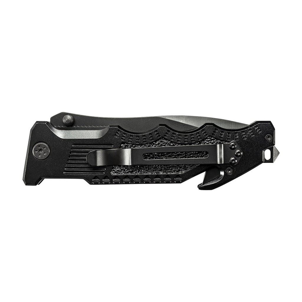 Duży nóż taktyczny z serii Border Guard zaprojektowany przez popularnego producenta broni palnej, firmę Smith & Wesson. Folder posiada klingę o funkcjonalnym profilu Drop Point wykonaną ze stali nierdzewnej 7Cr17MoV pokrytej czarną oksydą chroniącą przed korozją i odblaskami. Głownia łączy zalety i uniwersalność ostrza gładkiego z ząbkowaną krawędzią tnącą. Pozwala to na skuteczne cięcie zarówno miękkich przedmiotów jak i twardych lin, taśm, sznurów oraz innych podobnych materiałów. Szybkie i sprawne rozłożenie narzędzia jedną ręką umożliwia obustronny kołek. Bezpieczeństwo pracy, gdy folder jest w użyciu zapewnia klasyczny mechanizm Liner Lock. Ergonomicznie wyprofilowaną rękojeść zrobiono z aluminium o chropowatej fakturze poprawiającej przyczepność do dłoni, co gwarantuje pewny chwyt w każdych warunkach. Na zakończeniu znajduje się ostrze do cięcia pasów, zbijak do szyb oraz otwór na linkę umożliwiający przełożenie paracordu lub breloka ozdobnego. Dodatkowo konstrukcję uzupełnia klips mocujący do wygodnego przenoszenia narzędzia w kieszeni spodni lub przy wyposażeniu.