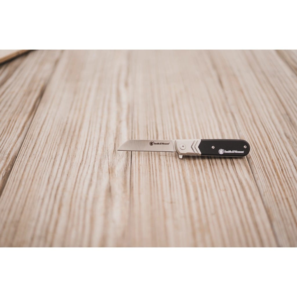 Barlow to smukły i kompaktowy folder zaprojektowany przez legendarnego producenta broni palnej, firmę Smith & Wesson. Model charakteryzuje się eleganckim, a jednocześnie taktycznym wyglądem, dzięki czemu świetnie sprawdzi się do wielu stylizacji w codziennym użytkowaniu. Ostrze o profilu Sheepsfoot zostało wykonane ze stali nierdzewnej 8Cr13MoV o satynowym wykończeniu, które pozostawia drobne ryski lekko matujące powierzchnię. Szybkie i sprawne rozłożenie narzędzia jedną ręką umożliwia flipper, zaś nad bezpieczeństwem pracy, gdy folder jest w użyciu czuwa blokada Liner Lock. Rękojeść składa się ze stalowego bolstera i okładzin zrobionych z lekkiego i wytrzymałego tworzywa G10 o antypoślizgowej fakturze. Konstrukcję uzupełnia klips mocujący do wygodnego przenoszenia noża w kieszeni spodni lub przy wyposażeniu.