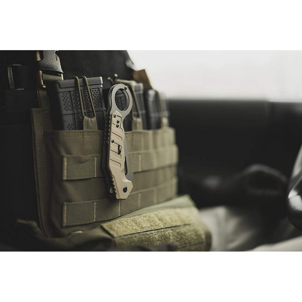 Karambit z serii Military&Police Extreme Ops to nowe spojrzenie na klasyczny folder. Głownię o profilu Reverse Tanto wykonano ze stali nierdzewnej 8Cr13MoV i pokryto szarym azotkiem tytanu, który chroni przed korozją i zarysowaniami. System wspomagania wysuwania ostrza pozwala na szybkie i płynne rozłożenie noża za pomocą jednej ręki przy wykorzystaniu flippera pełniącego jednocześnie funkcję jelca. Nad bezpieczeństwem pracy czuwa blokada Liner Lock wspierana dodatkowym zabezpieczeniem w postaci suwaka znajdującego się na okładzinie chwytu. Karbowany grzbiet narzędzia stanowi stabilne podparcie dla palców co w połączeniu z ergonomicznie wyprofilowaną rękojeścią zrobioną z tworzywa G10 gwarantuje dobrą przyczepność do dłoni. Na zakończeniu znajduje się okrągła głowica, która przedłuża chwyt i poprawia kontrolę nad folderem. Konstrukcję uzupełnia dwupozycyjny klips mocujący do wygodnego przenoszenia noża w kieszeni spodni lub przy wyposażeniu.