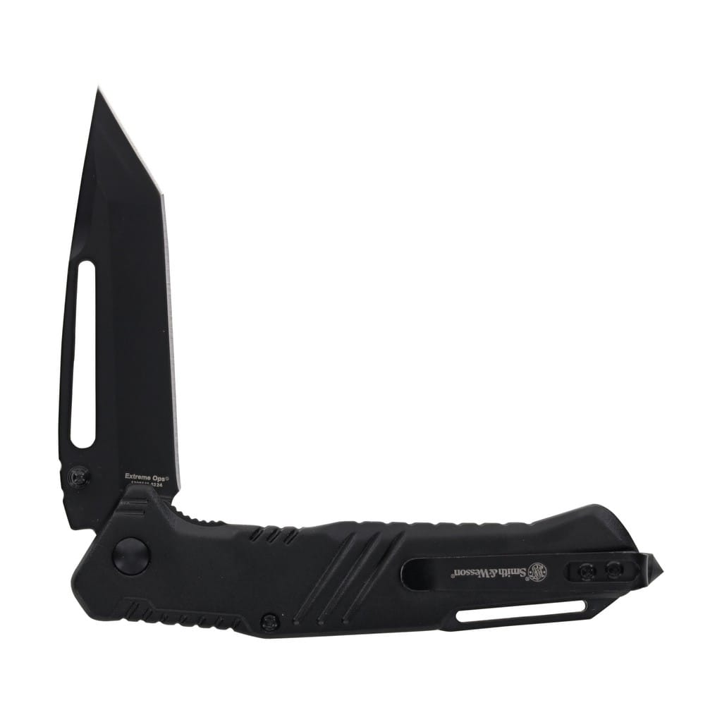 Taktyczny folder zaprojektowany dla profesjonalistów i miłośników militariów poszukujących narzędzia do codziennego użytku. Należy do serii Extreme Ops firmy Smith & Wesson rozpoznawalnej na całym świecie jako wiodący producent broni palnej. Model posiada ostrze o profilu Tanto wykonane ze stali nierdzewnej 7Cr pokrytej antyodblaskową powłoką, chroniącą przed korozją i negatywnym działaniem czynników zewnętrznych. W szybkim wysunięciu klingi jedną ręką pomaga obustronny kołek, podłużny otwór oraz flipper pełniący jednocześnie funkcję jelca. Dodatkowo mechanizm łożysk kulkowych Ultra Glide wpływa na płynną pracę noża. Karbowany grzbiet chwytu stanowi stabilne wsparcie dla kciuka, zaś blokada Liner Lock zabezpiecza przed przypadkowym złożeniem się narzędzia podczas pracy. Aluminiowa rękojeść, dzięki charakterystycznym nacięciom gwarantuje pewny chwyt. Na jej zakończeniu wbudowano zbijak do szyb, który w sytuacji awaryjnej pomoże wyjść nam z opresji. Konstrukcję uzupełnia klips mocujący do wygodnego przenoszenia foldera w kieszeni spodni lub przy wyposażeniu.