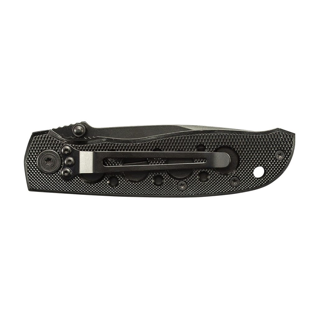 Taktyczny folder z serii Extreme Ops firmy Smith & Wesson zaprojektowany przez legendarnego producenta broni palnej. Model posiada klingę o profilu Tanto zrobioną ze stali nierdzewnej 7Cr17MoV pokrytej czarną oksydą, chroniącą przed korozją i odblaskami. Połączenie gładkiej krawędzi tnącej z ząbkowaną pozwala na skuteczne cięcie zarówno miękkich przedmiotów jak i twardych lin, taśm, sznurów oraz innych podobnych materiałów. Szybkie i sprawne rozłożenie narzędzia jedną ręką umożliwia obustronny kołek. Bezpieczeństwo pracy, gdy nóż jest w użyciu zapewnia klasyczny mechanizm Liner Lock. Karbowany grzbiet ostrza stanowi stabilne podparcie dla kciuka, co ułatwia wykonywanie zadań wymagających większej precyzji. Anodowaną na czarno aluminiową rękojeść charakteryzują okrągłe otwory zmniejszające wagę konstrukcji. Antypoślizgowa powłoka okładzin i ich delikatne wyprofilowanie sprawia, że folder dobrze leży w dłoni gwarantując komfort użytkowania. Na zakończeniu znajduje się otwór na linkę umożliwiający przełożenie paracordu lub breloka ozdobnego, co ułatwi chwytanie narzędzia. Całość dopełnia klips mocujący do wygodnego przenoszenia noża w kieszeni spodni lub przy wyposażeniu.