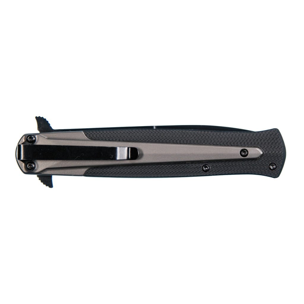 Nóż firmy Smith & Wesson o taktycznym wyglądzie, należący do serii Military & Police. Model został zaprojektowany przez jedną z najbardziej rozpoznawalnych marek na całym świecie zajmującą się produkcją broni palnej. Posiada smukłe, jednostronnie naostrzone ostrze o profilu Dagger charakteryzujące się dobrymi zdolnościami penetrującymi, dzięki czemu świetnie nadaje się do pchnięć. Głownia została zrobiona ze stali nierdzewnej 8Cr13MoV i pokryta czarną oksydą zabezpieczającą przed korozją i odblaskami. Szybkie i sprawne rozłożenie narzędzia jedną ręką umożliwia kołek oraz obustronny flipper pełniący jednocześnie funkcję jelca. Bezpieczeństwo pracy, gdy model jest w użyciu zapewnia klasyczny mechanizm Liner Lock. Rękojeść to połączenie aluminium w szarym kolorze i czarnego nylonu. Konstrukcję uzupełnia klips mocujący do wygodnego przenoszenia noża w kieszeni spodni lub przy wyposażeniu.