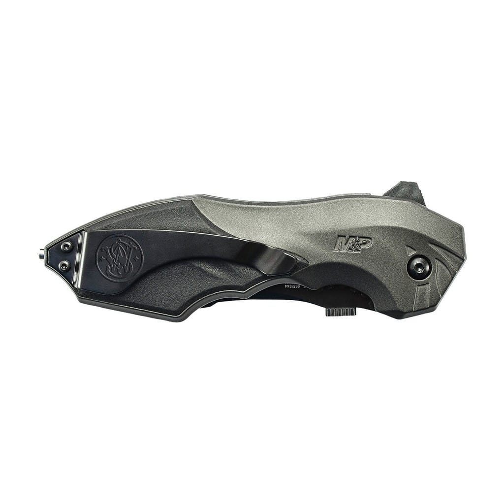 Nóż taktyczny o drapieżnym wyglądzie należący do serii Military & Police znanego producenta broni palnej, firmy Smith & Wesson. Model stanowi doskonałą propozycję dla pracowników mundurowych oraz wszystkich miłośników militariów poszukujących narzędzia do codziennej pracy w domu i w terenie. Uniwersalne ostrze o profilu Clip Point zostało wykonane ze stali nierdzewnej 4034 pokrytej czarną oksydą chroniącą przed korozją i odblaskami. Rozłożenie foldera jedną ręką umożliwia dysk oraz dźwignia przypominająca celownik, zaś wspomaganie M.A.G.I.C. sprawia, że folder jest gotowy do działania w ułamku sekundy. Bezpieczeństwo pracy zapewnia klasyczny mechanizm Liner Lock wspierany przez dodatkowe zabezpieczenie w postaci suwaka na rękojeści. Aluminiowe okładziny chwytu dzięki specjalnie zaprojektowanej, nierównej powierzchni gwarantują pewny chwyt nawet, gdy dłoń jest mokra lub w rękawicy. Na zakończeniu znajduje się zbijak do szyb, który w sytuacji awaryjnej pomoże wyjść nam z opresji. Konstrukcję uzupełnia klips mocujący do wygodnego przenoszenia noża w kieszeni spodni lub przy wyposażeniu.