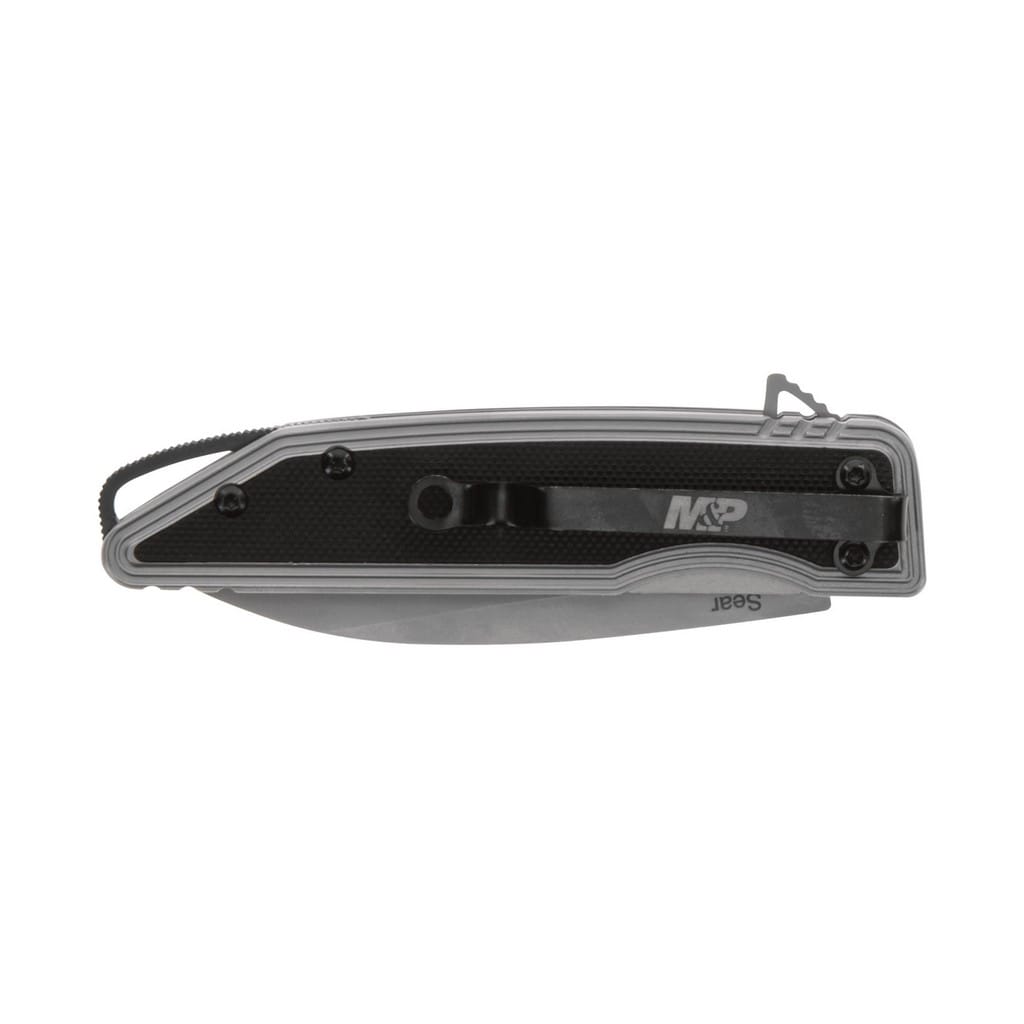 Amerykański producent broni palnej firma Smith & Wesson zaprojektowała kompaktowy nóż Sear do codziennego użytku. Model posiada głownię o profilu Wharncliffe wykonaną ze stali nierdzewnej 8Cr13MoV o matowym wykończeniu, uzyskanym dzięki metodzie beadblast. Użytkownik może sprawnie wysunąć klingę jedną ręką przy wykorzystaniu flippera, pełniącego jednocześnie funkcję jelca, chroniącego dłoń przed jej przypadkowym zsunięciem się na krawędź tnącą. Dodatkowo wspomaganie wysuwania ostrza sprawia, że model jest gotowy do działania w ułamku sekundy. Nad bezpieczeństwem pracy, gdy narzędzie jest w użyciu czuwa blokada Liner Lock. Stalowa rękojeść wzbogacona o czarne wkładki z tworzywa G10 o antypoślizgowej fakturze dobrze leżu w ręku. Konstrukcję uzupełnia sporych rozmiarów otwór na linkę oraz klips mocujący do wygodnego przenoszenia noża w kieszeni lub przy wyposażeniu.