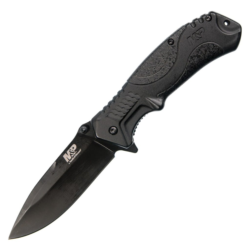 Składany nóż taktyczny o agresywnym wyglądzie wyprodukowany przez legendarnego producenta broni palnej, firmę Smith & Wesson. Stanowi idealny wybór na folder EDC dla mundurowych, a także dla wszystkich miłośników militariów. Ostrze o uniwersalnym profilu Drop Point wykonano ze stali nierdzewnej 8Cr13MoV i pokryto czarną oksydą chroniącą przed korozją i odblaskami. W szybkim rozłożeniu klingi pomaga obustronny kołek oraz duży flipper, pełniący jednocześnie funkcję jelca, a mechanizm łożysk kulkowych Ultra Glide wpływa na płynną pracę narzędzia. Bezpieczeństwo, gdy nóż jest w użyciu zapewnia klasyczny mechanizm Liner Lock. Ergonomicznie wyprofilowaną rękojeść z tworzywa wzbogacono o gumowe elementy antypoślizgowe. Wraz z głębokim wcięciem pod palec gwarantuje dobrą przyczepność do dłoni i pewny chwyt w każdych warunkach. Na zakończeniu znajduje się otwór na linkę umożliwiający przełożenie paracordu lub breloka ozdobnego. Całość dopełnia klips mocujący do wygodnego przenoszenia narzędzia w kieszeni spodni lub przy wyposażeniu.