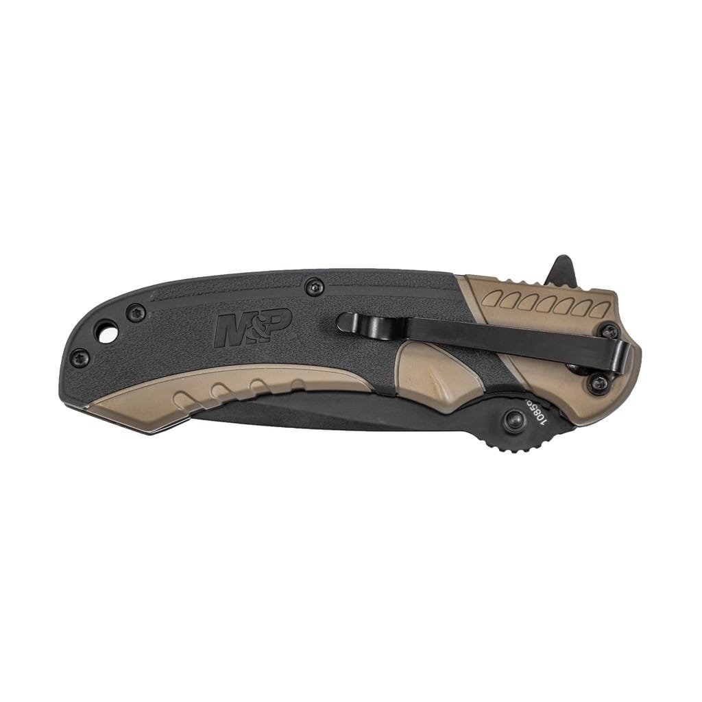 Kompaktowy nóż firmy Smith & Wesson charakteryzujący się taktycznym wyglądem, należący do serii Military & Police. Model został zaprojektowany przez jedną z najbardziej rozpoznawalnych marek na całym świecie zajmującą się produkcją broni palnej. Doskonale nadaje się jako folder do codziennego użytku dla mundurowych, a także dla wszystkich miłośników militariów. Ostrze o uniwersalnym profilu Drop Point zrobiono ze stali nierdzewnej 8Cr13MoV i pokryto czarną oksydą chroniącą przed korozją i odblaskami. W szybkim rozłożeniu klingi pomaga obustronny kołek oraz duży flipper, pełniący jednocześnie funkcję jelca, a mechanizm łożysk kulkowych Ultra Glide wpływa na płynną pracę narzędzia. Bezpieczeństwo, gdy model jest w użyciu zapewnia klasyczny mechanizm Liner Lock. Karbowany grzbiet głowni stanowi stabilne podparcie dla kciuka, co ułatwia wykonywanie zadań wymagających większej precyzji. Ergonomicznie wyprofilowaną rękojeść z aluminium wzbogacono o antypoślizgową fakturą z tworzywa. Wraz z głębokim wcięciem pod palec gwarantuje to dobrą przyczepność do dłoni i pewny chwyt nawet gdy dłoń jest mokra lub w rękawicy. Na zakończeniu znajduje się otwór na linkę umożliwiający przełożenie paracordu lub breloka ozdobnego. Konstrukcję dopełnia klips mocujący do wygodnego przenoszenia narzędzia w kieszeni spodni lub przy wyposażeniu.