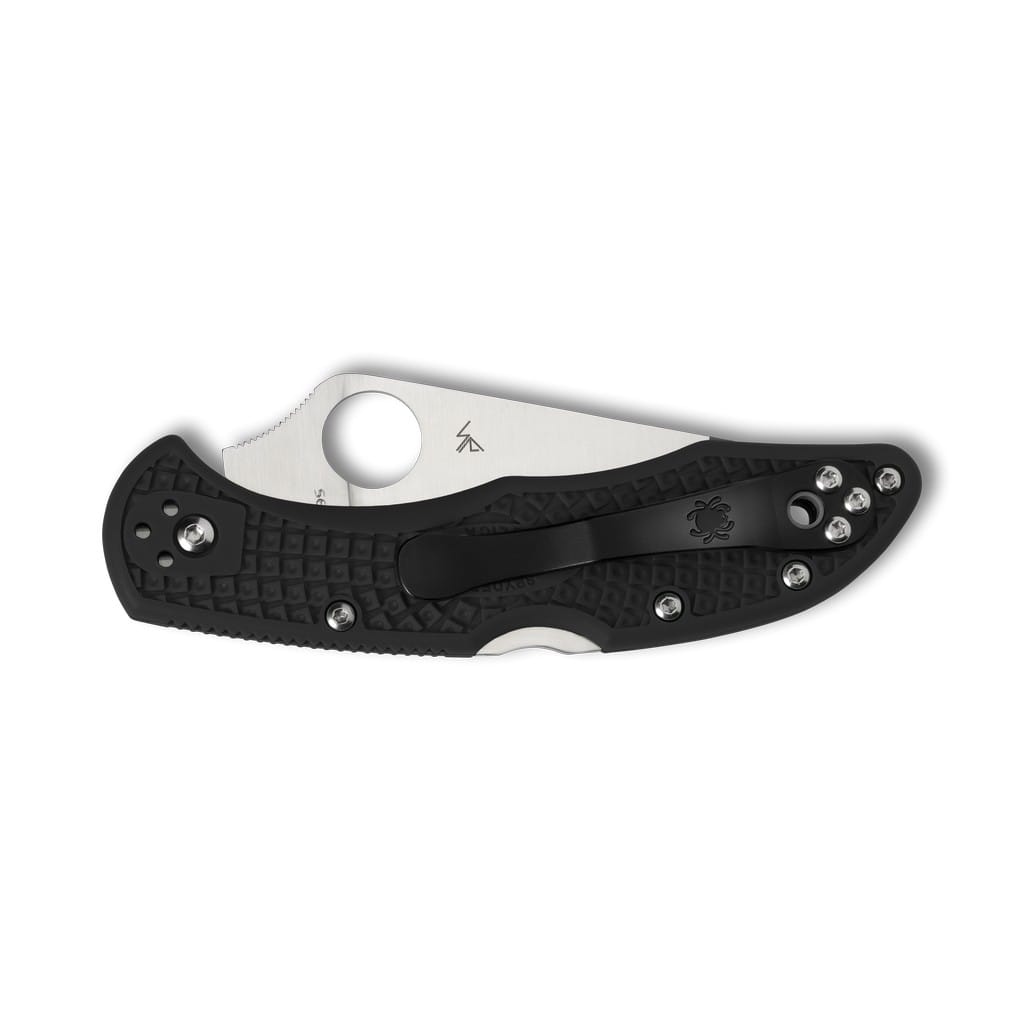 Spyderco Delica 4 tuż obok wersji Endura jest jednym z najlepiej sprzedających się modeli noży składanych tego producenta. Swoją sławę oraz popularność zawdzięcza doskonałej jakości oraz niebywałej wytrzymałości. Kompaktowe rozmiary i niewielka waga czynią z niego idealny folder EDC. Czwarta generacja oferuje szeroki wybór kolorów rękojeści i rodzajów krawędzi tnącej chcąc w ten sposób sprostać wszystkim potrzebom użytkowników i zwiększyć ich komfort pracy z narzędziem. Ostrze o płaskim pełnym szlifie i profilu Clip Point wykonano z wysokiej jakości japońskiej stali nierdzewnej VG-10. Blokada to klasyczny back lock z wcięcie Boye Dent, dzięki któremu zapobiegniemy przypadkowemu złożeniu się głowni nawet przy bardzo mocnym chwycie rękojeści. Kolejnym atutem jest duży otwór na kciuk pomagający wysunąć ostrze za pomocą jednej dłoni. Patent Spyderco pozwala bez problemu rozłożyć folder zarówno prawą jak i lewą ręką. Lekka rękojeść ze szkieletowymi wkładami ze stali nierdzewnej i okładzinami z nylonu wzmocnionego włóknem szklanym posiada specjalną strukturę Bi-Directional wykazującą właściwości antypoślizgowe. Karbowane oparcie dla kciuka na głowni i grzbiecie chwytu sprzyja bezpieczeństwu pracy. Całość uzupełnia stalowy klips mocujący z możliwością zamocowania go w jednym z czterech położeń.