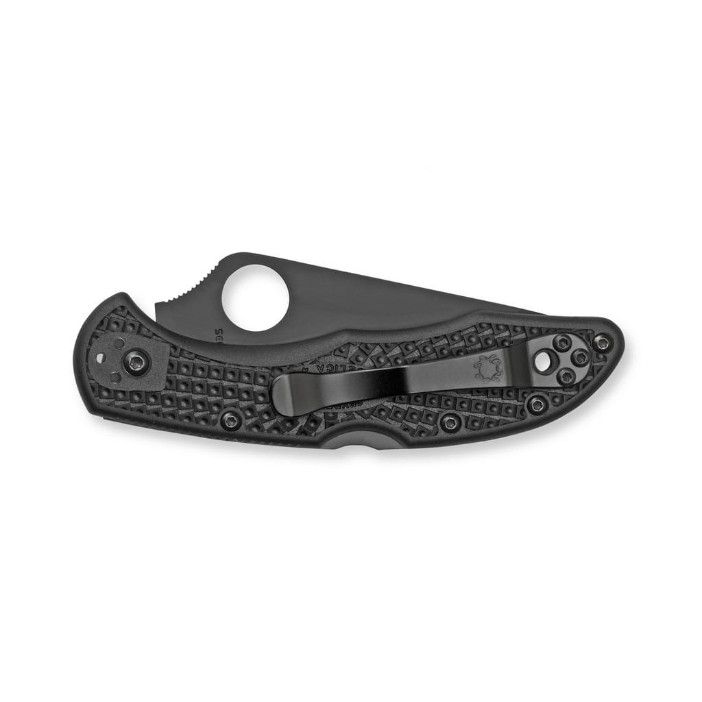 Spyderco Delica 4 tuż obok wersji Endura jest jednym z najlepiej sprzedających się modeli noży składanych tego producenta. Swoją sławę oraz popularność zawdzięcza doskonałej jakości oraz niebywałej wytrzymałości. Kompaktowe rozmiary i niewielka waga czynią z niego idealny folder EDC. Czwarta generacja oferuje szeroki wybór kolorów rękojeści i rodzajów krawędzi tnącej chcąc w ten sposób sprostać wszystkim potrzebom użytkowników i zwiększyć ich komfort pracy z narzędziem. Ostrze o płaskim szlifie typu Saber i profilu Clip Point wykonano z wysokiej jakości japońskiej stali nierdzewnej VG-10. W celu zapewnienia ochrony przed odblaskami pokryto je powłoką Titanium Carbonitride, czyli czarnym związkiem tytanu, który jest odporny na zarysowania, nie łuszczy się i chroni powierzchnię przed korozją. Blokada to klasyczny back lock z wcięcie Boye Dent, dzięki któremu zapobiegniemy przypadkowemu złożeniu się głowni nawet przy bardzo mocnym chwycie rękojeści. Kolejnym atutem jest duży otwór na kciuk pomagający wysunąć ostrze za pomocą jednej dłoni. Patent Spyderco pozwala bez problemu rozłożyć folder zarówno prawą jak i lewą ręką. Lekka rękojeść ze szkieletowymi wkładami ze stali nierdzewnej i okładzinami z nylonu wzmocnionego włóknem szklanym posiada specjalną strukturę Bi-Directional wykazującą właściwości antypoślizgowe. Karbowane oparcie dla kciuka na głowni i grzbiecie chwytu sprzyja bezpieczeństwu pracy. Całość uzupełnia stalowy klips mocujący z możliwością zamocowania go w jednym z czterech położeń.