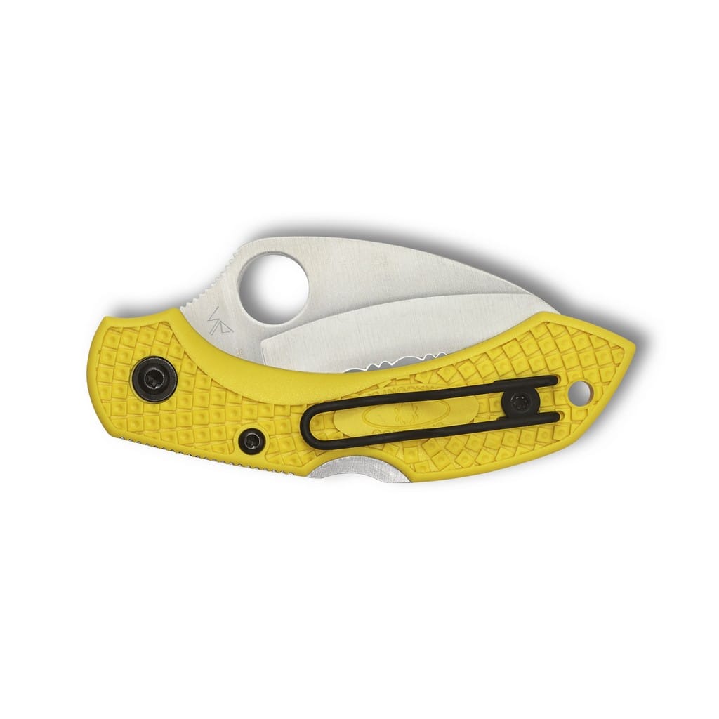 Dragonfly 2 Salt to nieduży nóż składany o drapieżnym i agresywnym charakterze z klingą zaokrągloną jak pazur zwierzęcia. Taki profil głowni nazywany Hawkbill doskonale sprawdzi się przy pracach w wodzie jak i wokół niej, dlatego model ten będzie idealnym kompanem miłośników wszelakiej aktywności wodnej. Zakrzywione ostrze bardzo dobrze zbiera materiał wsuwając go w wklęsłą krawędź co generuje ekstremalną siłę cięcia, dzięki czemu wydajność pracy jest wyższa niż w przypadku tradycyjnych kształtów ostrza. Klinga o płaskim szlifie typu Saber została wykonana z odpornej na korozję stali H-2. Szybkie rozłożenie ostrza za pomocą jednej dłoni umożliwia duży otwór na kciuk. Patent Spyderco pozwala bez problemu otworzyć nóż zarówno prawą jak i lewą ręką. Rękojeść z nylonu wzmocnionego włóknem szklanym w jaskrawym kolorze posiada specjalną strukturę Bi-Directional poprawiającą chwyt. Zapewnia ona wysoki komfort użytkowania i należytą przyczepność. Blokada to klasyczny Back Lock z wycięciem Boye Dent, które zapobiega przypadkowemu jej zwolnieniu. Bezpieczeństwu pracy dodatkowo sprzyjają karbowane brzegi narzędzia. Całość uzupełnia oczko na linkę oraz dwupozycyjny klips mocujący do wygodnego przenoszenia noża. Dragonfly Salt 2 to folder niewielkich rozmiarów, który świetnie sprawdzi się jako model EDC.