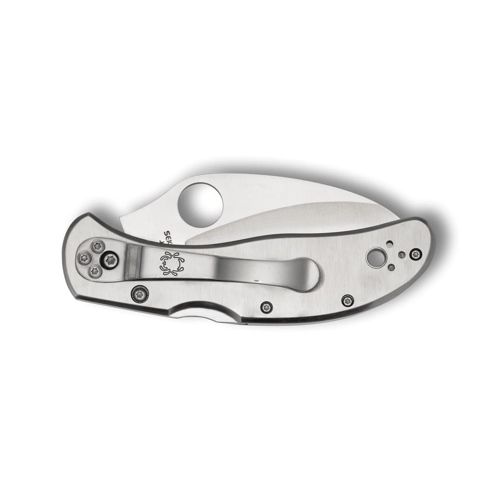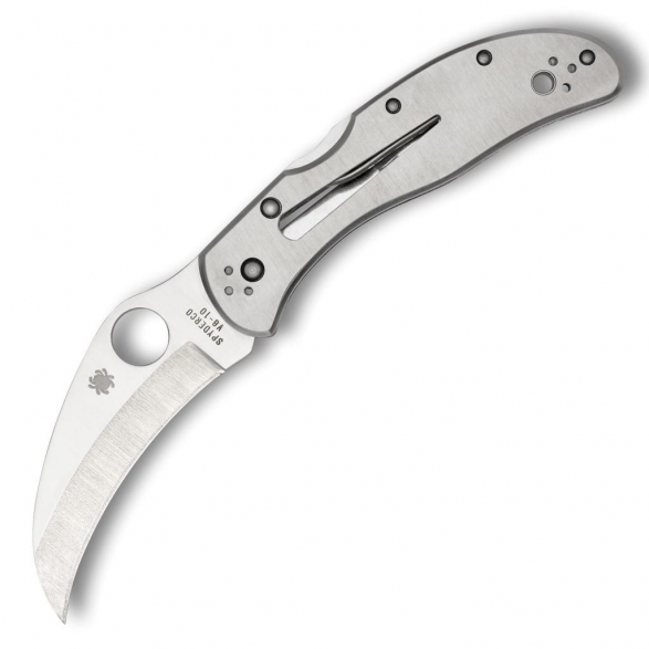 Harpy firmy Spyderco to kompaktowy nóż składany charakteryzujący się drapieżnym wyglądem. Głownia o profilu Hawkbill, przypominająca zaokrąglony pazur zwierzęcia, została wykonana z wysokiej jakości, japońskiej stali nierdzewnej VG-10. Ten specyficzny kształt ostrza doskonale zbiera materiał, co wpływa na wydajność pracy. Świetnie nadaje się do cięcia siatek, lin, sznurów oraz taśm. Wykończenie klingi metodą Satin pozostawia drobne ryski lekko matujące powierzchnię, dające efekt niedokładnego wypolerowania. Głownia posiada perfekcyjnie umiejscowiony okrągły otwór, za pomocą którego można szybko rozłożyć folder przy użyciu jednej ręki. Bezpieczeństwo pracy zapewnia blokada Back Lock, z wycięciem Boye Dent, zapobiegająca przed przypadkowym złożeniem się noża, gdy jest w użyciu. Stalową rękojeść cechują zaokrąglone krawędzie wpływające na komfort użytkowania. Dodatkową zaletę modelu Harpy jest pusta przestrzeń w uchwycie, która pełni rolę klucza do odkręcania śrub w szeklach żeglarskich. Na zakończeniu znajduje się miejsce umożliwiające przełożenie breloka ozdobnego lub paracordu. Całość dopełnia czteropozycyjny klips mocujący do wygodnego przenoszenia narzędzia wedle indywidualnych potrzeb i preferencji.