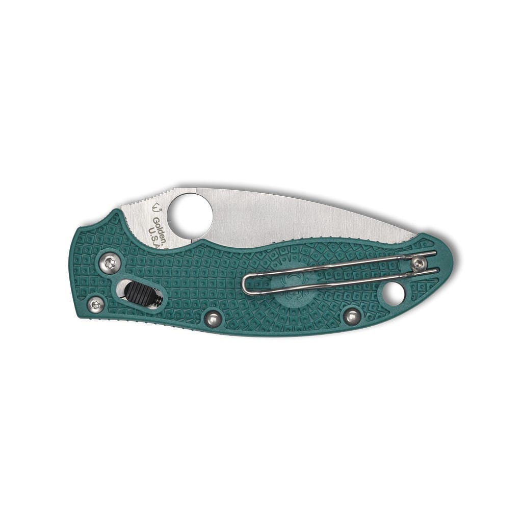 Amerykańska firma Spyderco od dawna jest liderem w branży w zakresie stosowania egzotycznych i wysokowydajnych stali do produkcji swoich noży. Po latach wykorzystywania najlepszych materiałów, jakie mogli dostarczyć czołowi światowi producenci stali, Spyderco zdecydowało się na stworzenie własnej. Przy ścisłej współpracy z Crucible Industries opracowano stal nierdzewną CPM SPY27 zawierającą zastrzeżoną mieszankę wanadu, molibdenu, niobu, azotu i kobaltu. Ta niezwykła kompozycja pierwiastków w połączeniu z najnowocześniejszym procesem metalurgii jest produkowana wyłącznie dla firmy Spyderco. Model Manix 2 oprócz nowoczesnej stali charakteryzuje się również opatentowanym przez producenta systemem zamykania „Ball Bearing Lock”. Jest to łożysko wykonane z hartowanej kulki zamkniętej w polimerowej obudowie. Okrągła kulka pozwala zamkowi na samoistne ustawienie się wzdłuż dużej powierzchni oraz łagodne i pewne zamknięcie. Ostrze posiada duży otwór, który umożliwia szybkie i wygodne rozłożenie noża jedną ręką, nawet w przypadku osób posiadających duże dłonie. Bezpieczeństwu pracy sprzyja ząbkowane oparcie dla kciuka na górnej krawędzi głowni. Ergonomicznie wyprofilowana rękojeść pod zaciskającą się dłoń użytkownika została wykonana z polimeru wzmocnionego włóknem szklanym (FRCP) w turkusowym kolorze. Jej antypoślizgowa tekstura i karbowane brzegi poprawiają kontrolę nad nożem i gwarantują pewny chwyt w każdych warunkach. Konstrukcję uzupełnia otwór na linkę oraz dwupozycyjny klips mocujący o drucianej budowie, dzięki któremu możemy wygodnie przenosić folder w kieszeni lub przy wyposażeniu.