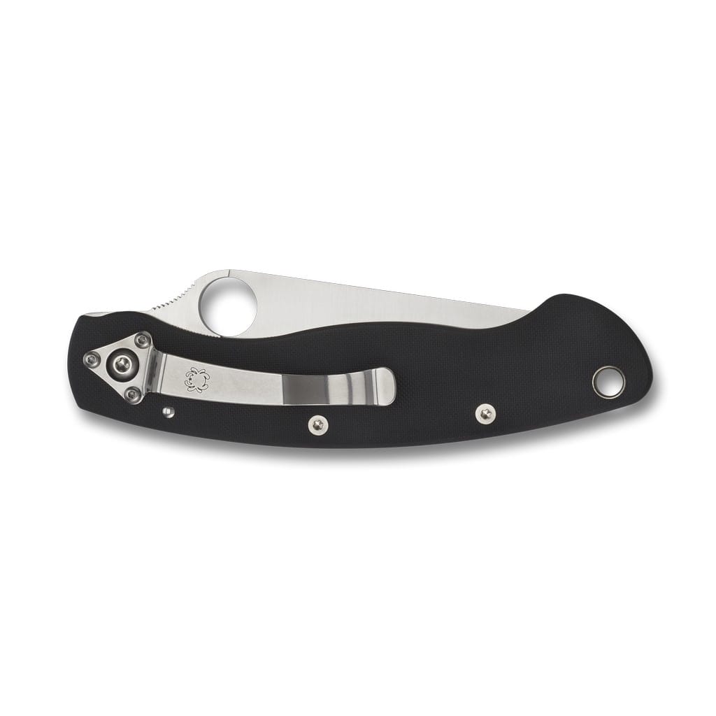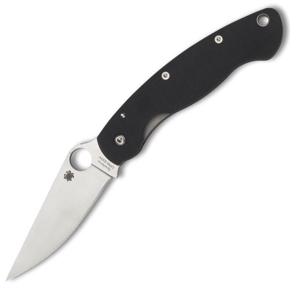 Model Military powstał tuż po tym jak pewnego razu zapytano właściciela firmy Spyderco, Sala Glessera o to jaki dałby swojemu synowi nóż składany gdyby jechał on do wojska. Folder został zaprojektowany perfekcyjnie w każdym calu z przeznaczeniem do trudnych zadań i wykonany z najlepszych materiałów. Zyskał rzeszę zażyłych zwolenników zarówno w armii jak i w cywilu. Ostrze o zmodyfikowanym profilu Clip Point wykonano ze stali proszkowej CPM S30V, która długo trzyma ostrość oraz jest twarda i odporna na korozję. Bezpieczeństwu pracy sprzyja ząbkowane oparcie dla kciuka na górnej części głowni. Ergonomiczna rękojeść z lekkiego tworzywa G-10 o antypoślizgowej fakturze posiada głębokie wcięcie na palec, które zapewnia odpowiednią kontrolę nad nożem nawet podczas agresywnych cięć. Duży otwór o średnicy 14 mm na kciuk pozwala szybko i za pomocą jednej dłoni wysunąć klingę z rękojeści. Zastosowana blokada typu liner lock chroni użytkownika przed złożeniem się ostrza gdy jest w użyciu. Uzupełnienie konstrukcji stanowi klips mocujący na prawej stronie chwytu oraz otwór na linkę do zamocowania smyczy zabezpieczającej. Nóż Military to model wysokiej jakości, który sprosta wszystkim zadaniom jakie napotyka folder codziennego użytku.