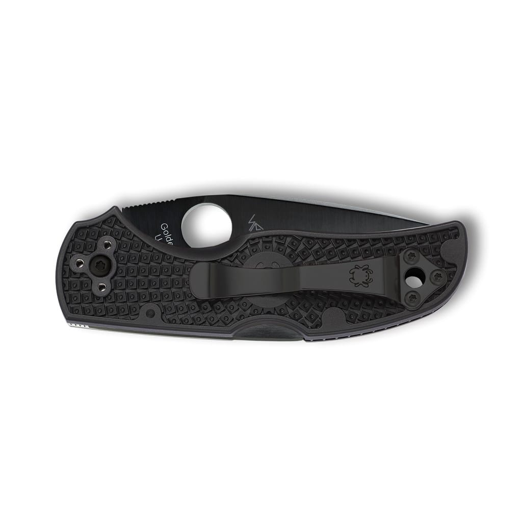 Pierwszy folder Native miał swoją premierę w roku 1997 i od tego czasu stał się flagowym modelem wśród produktów amerykańskiej firmy Spyderco. Przez lata projekt ewoluował i był konsekwentnie ulepszany aż do momentu wprowadzenia na rynek piątej generacji tego popularnego noża EDC, który w roli kieszonkowego narzędzia sprawdzi się doskonale. Native 5 został z dumą wyprodukowany w fabryce w Golden w stanie Kolorado w USA. Ogromną jego zaletą jest lekka rękojeść z nylonu wzmocnionego włóknem szklanym posiadająca specjalną strukturę Bi-Directional, która zapewnia pewny chwyt w każdych warunkach pogodowych. Klingę o płaskim szlifie i profilu Spear Point wykonano z wysokiej jakości stali nierdzewnej klasy premium CPM S30V pokrytej nieodblaskową powłoką ochronną Diamond Like Carbon (DLC) o twardości zbliżonej do diamentu. Częściowo ząbkowana krawędź tnąca doskonale sprawdzi się do cięcia włóknistych materiałów, wszelakich sznurów i lin. Blokada to klasyczny back lock, który zapobiega przypadkowemu złożeniu się noża. Dodatkowym atutem jest duży otwór na kciuk, dzięki któremu możemy szybko wysunąć ostrze z rękojeści za pomocą jednej dłoni. Patent Spyderco pozwala bez problemu rozłożyć nóż zarówno prawą jak i lewą ręką. Karbowane oparcie na głowni pod palec sprzyja bezpieczeństwu pracy. Uzupełnienie konstrukcji stanowi otwór na linkę oraz stalowy klips z możliwością zamocowania go w jednym z czterech położeń. Całość została wykonana w czarnym kolorze łącznie ze śrubami , co czyni z noża idealny folder o taktycznym charakterze.