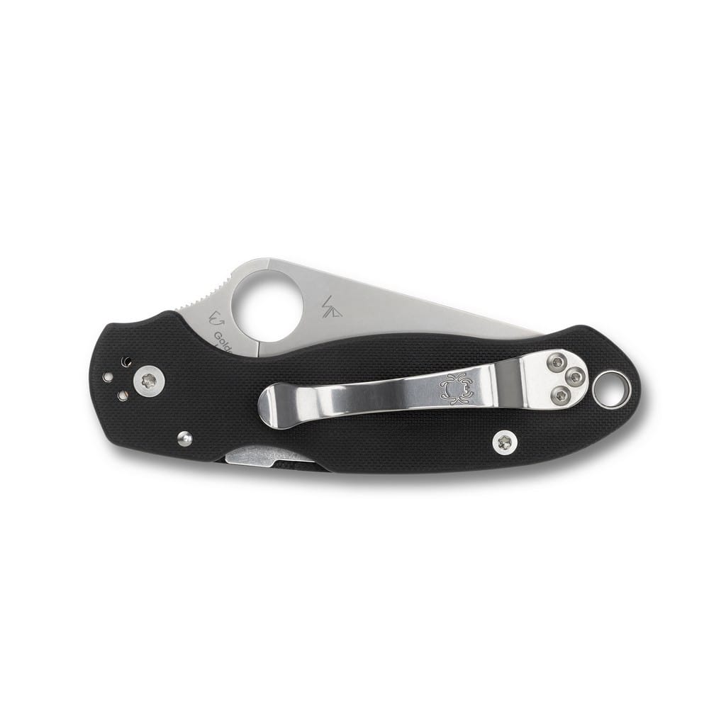Para 3 firmy Spyderco to kompaktowy i lekki folder zaprojektowany do codziennego użytku. Model został wyprodukowany w USA z wysokiej jakości, wytrzymałych materiałów. Ostrze o płaskim pełnym szlifie wykonano ze stali nierdzewnej CPM S45VN o dużej zawartości węgla, chromu, wanadu i niobu. Pierwiastki te podnoszą wytrzymałość oraz zwiększają odporność na korozję i ścieranie. Rękojeść składa się ze szkieletowych linersów, do których za pomocą nieco większych śrub Torx ułatwiających regulację przykręcono okładziny z tworzywa G-10 o antypoślizgowej fakturze. Na jej zakończeniu znajduje się sporych rozmiarów otwór na linkę mocującą lub smycz pozwalający na więcej opcji wygodnego przenoszenia noża. Szybkie wysunięcie ostrza jedną ręką umożliwia duży otwór na kciuk. Dodatkowo karbowane oparcie na głowni pod palec sprzyja bezpieczeństwu pracy a mechanizm Compression Lock zabezpiecza przed przypadkowym złożeniem się klingi. Uzupełnienie całości stanowi stalowy klips z logo producenta z możliwością zamocowania go w jednym z czterech położeń co pozwala na wygodne użytkowanie zarówno przez osoby prawo jak i leworęczne.
